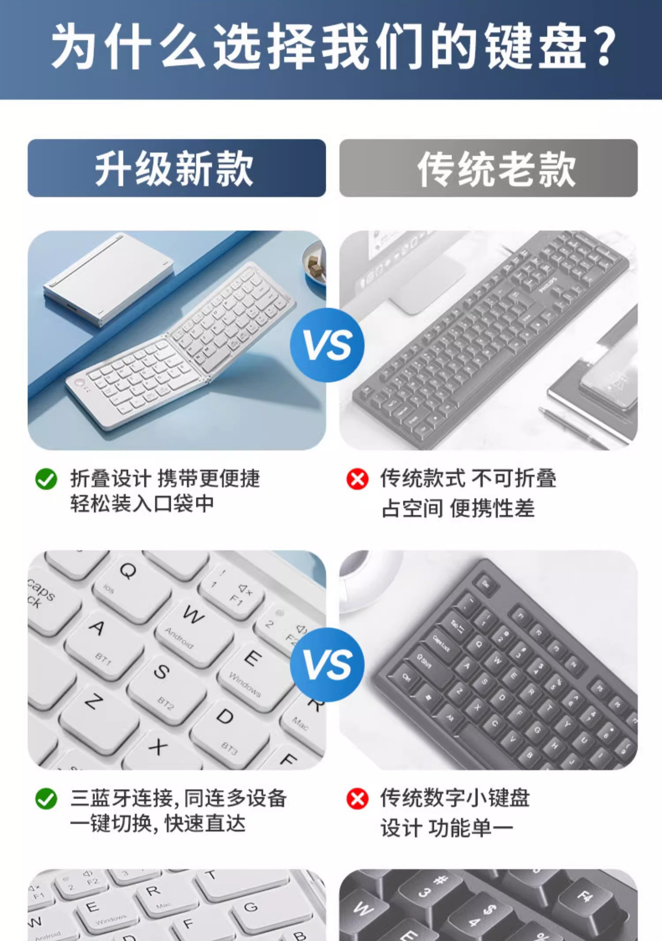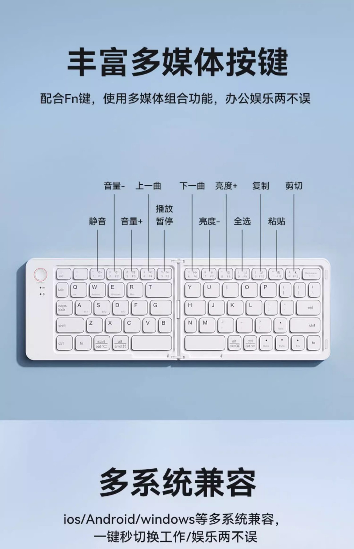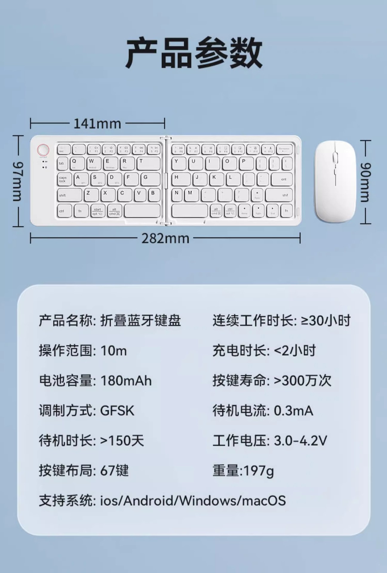 국경 간 인기 판매 Bluetooth 무선 접이식 키보드 및 마우스 세트 다중 장치 노트북 태블릿 접이식 키보드스토어 가기