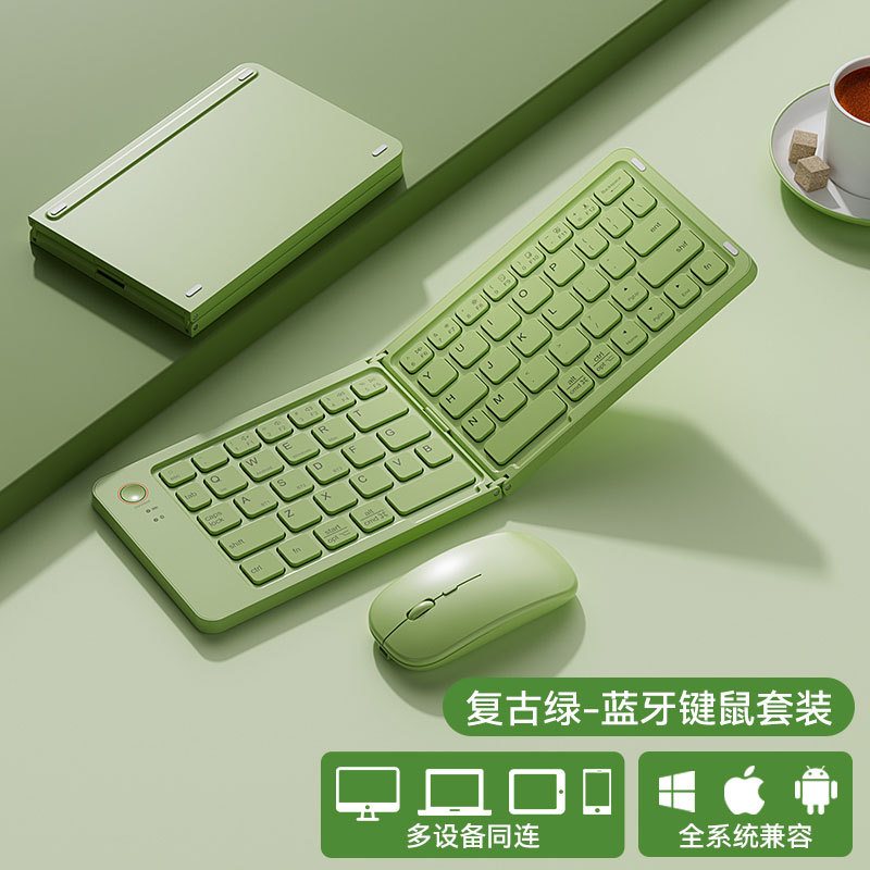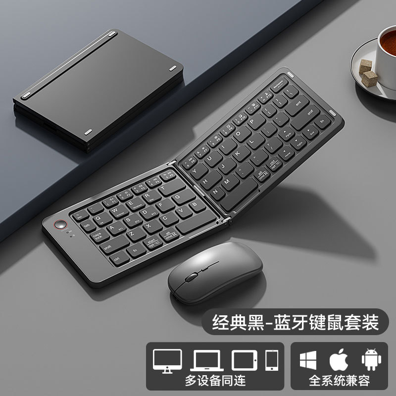 국경 간 인기 판매 Bluetooth 무선 접이식 키보드 및 마우스 세트 다중 장치 노트북 태블릿 접이식 키보드
