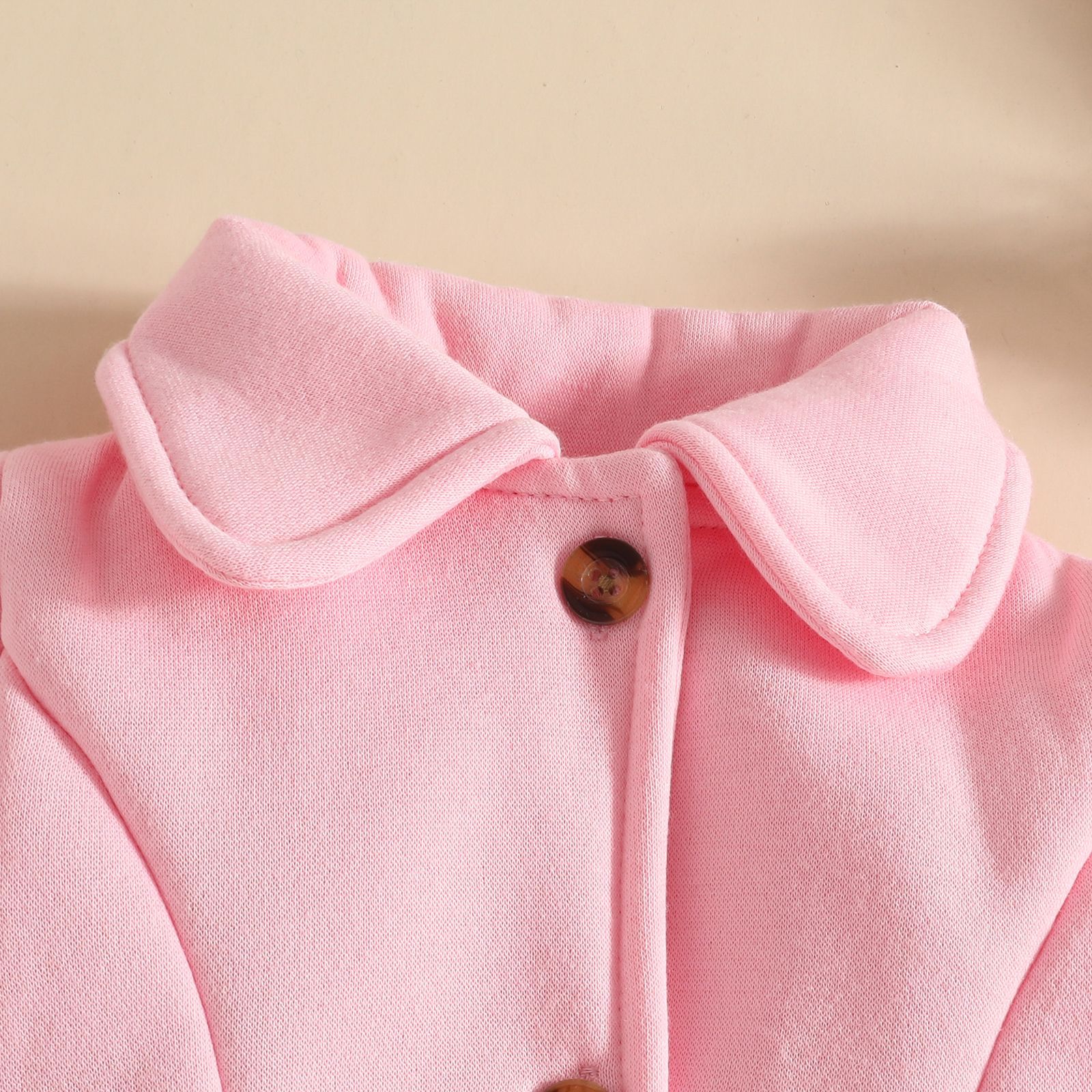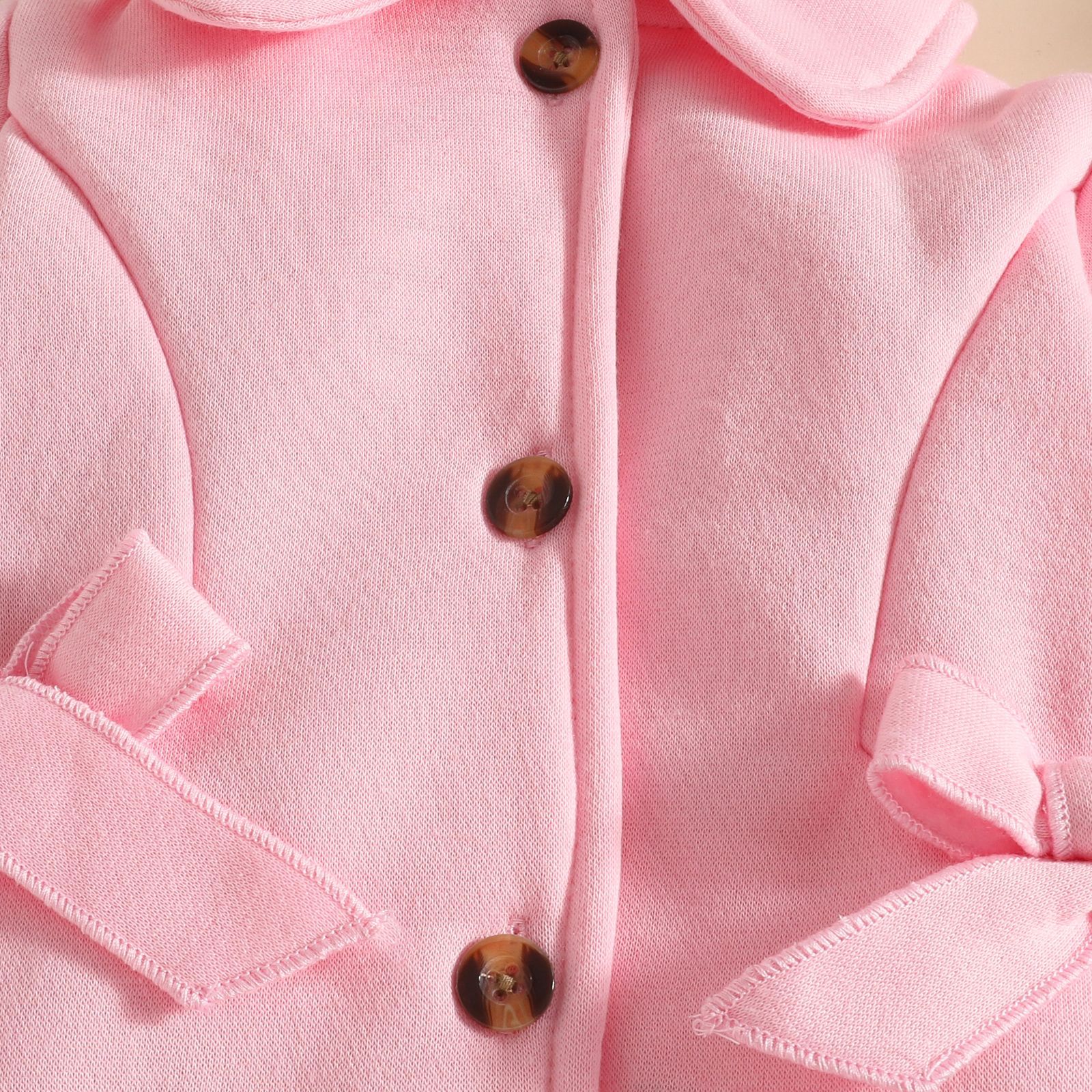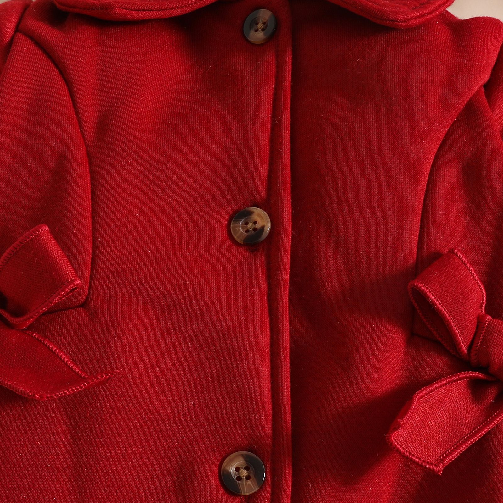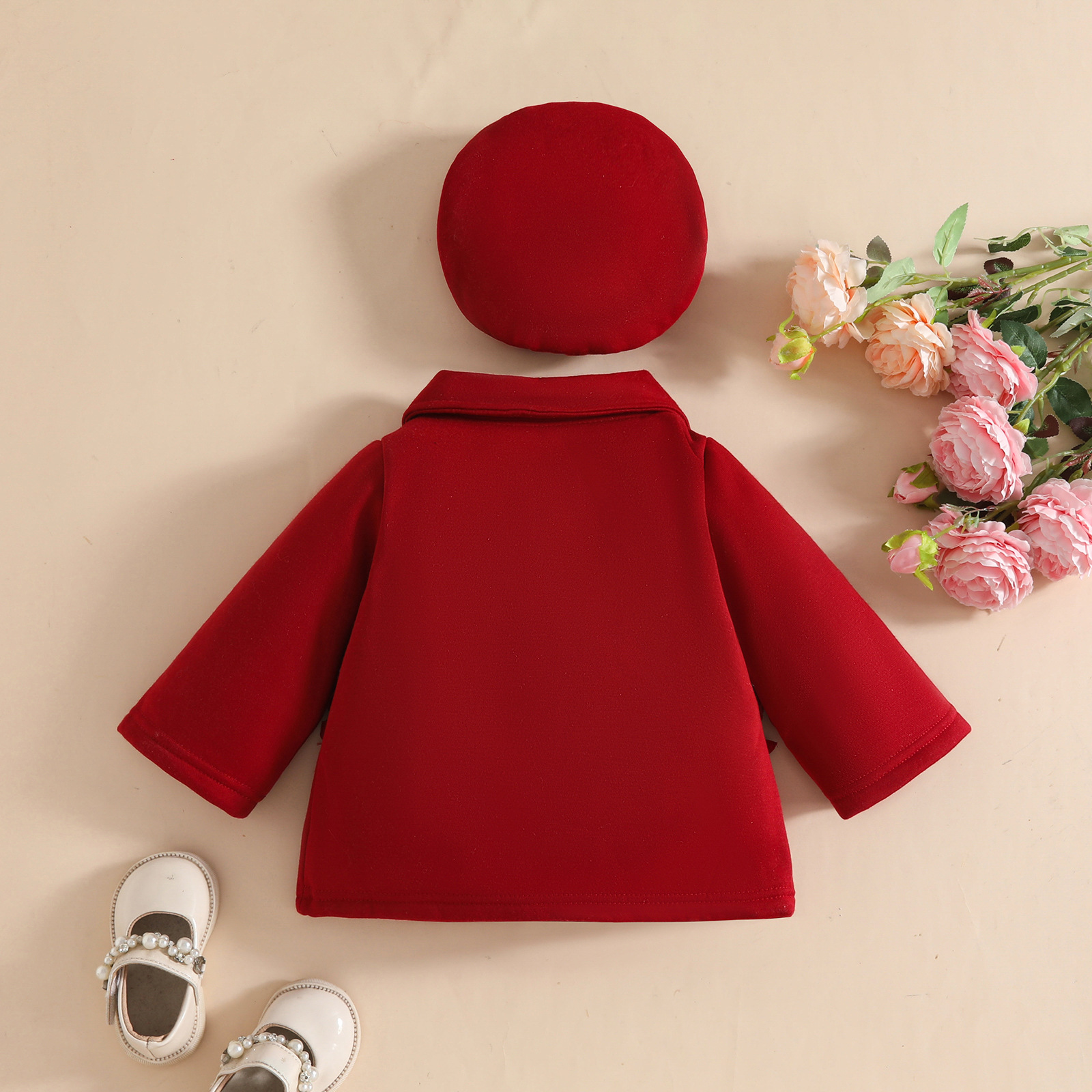 가을 겨울 여아용 카라 달린 단색 리본 장식 긴팔 코트+베레모 세트 도매