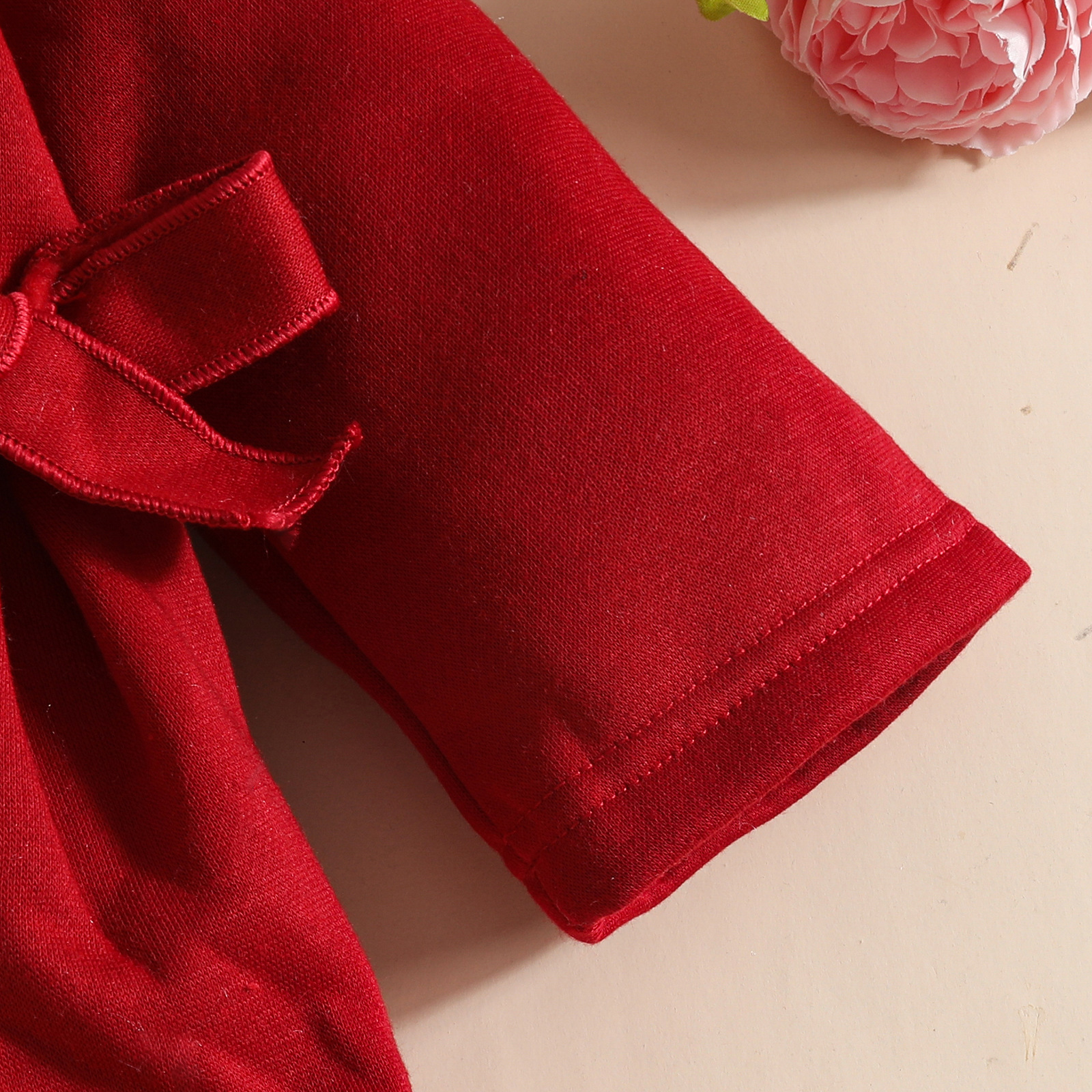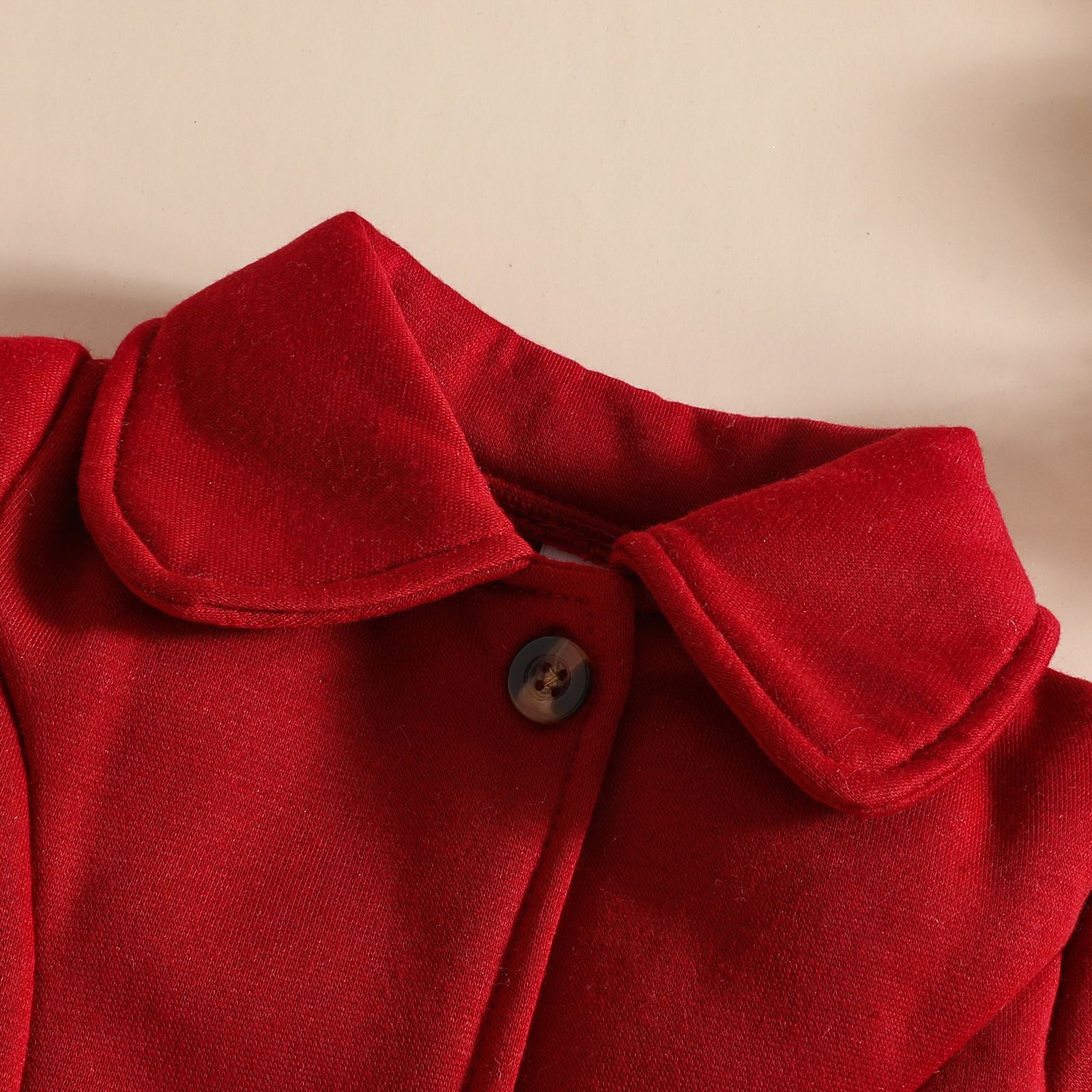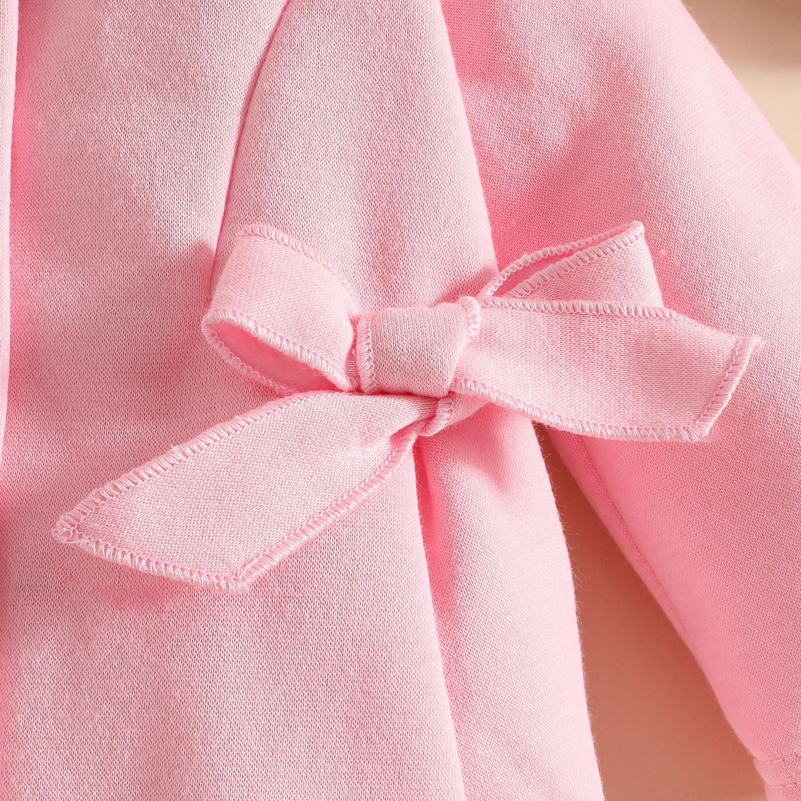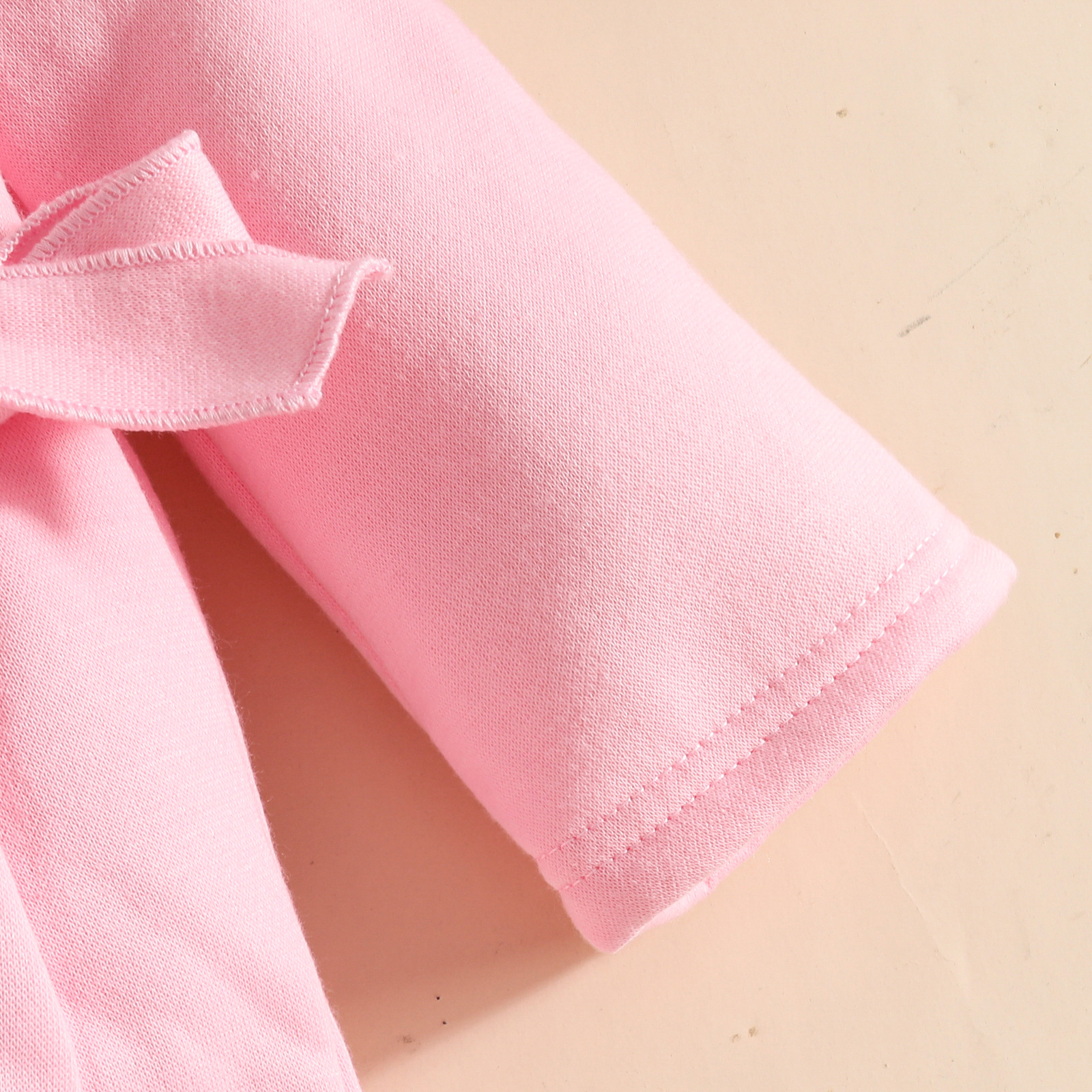 가을 겨울 여아용 카라 달린 단색 리본 장식 긴팔 코트+베레모 세트 도매