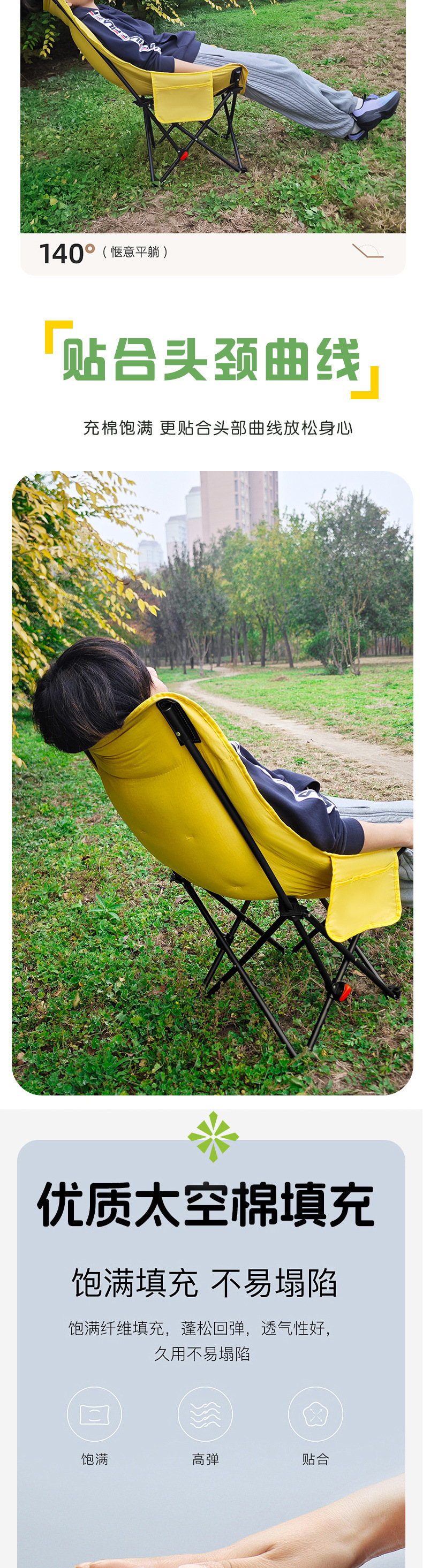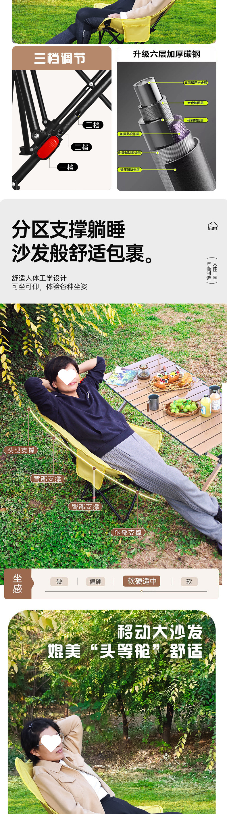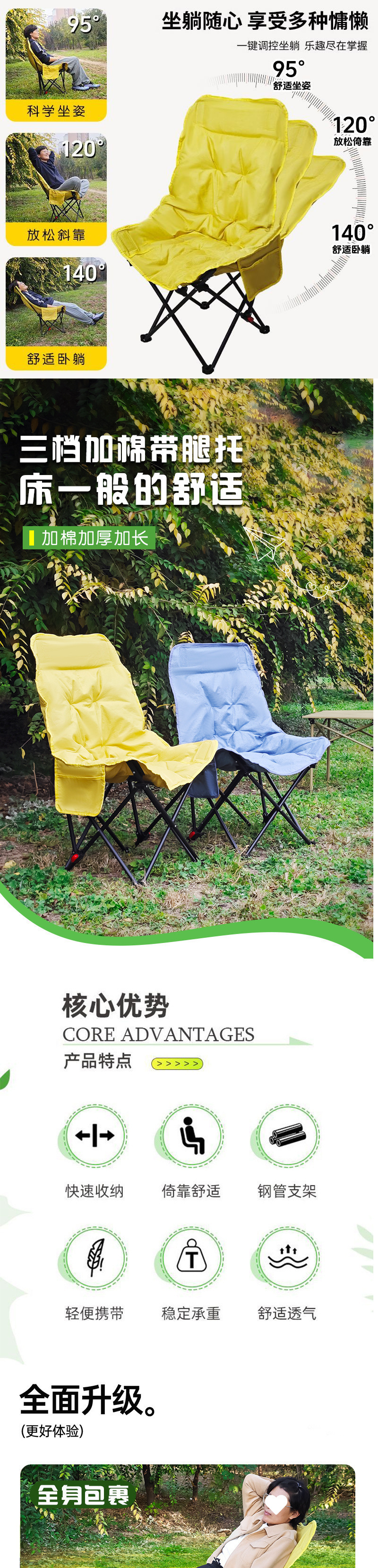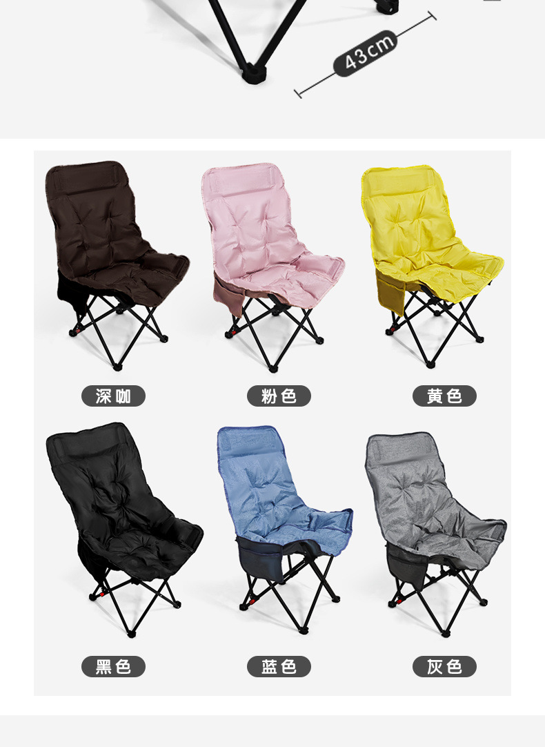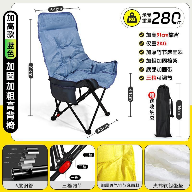 3단 조절 가능/면 접이식 게으른 달 의자 캠핑 휴대용 높은 등받이 피크닉 의자 낚시 야외