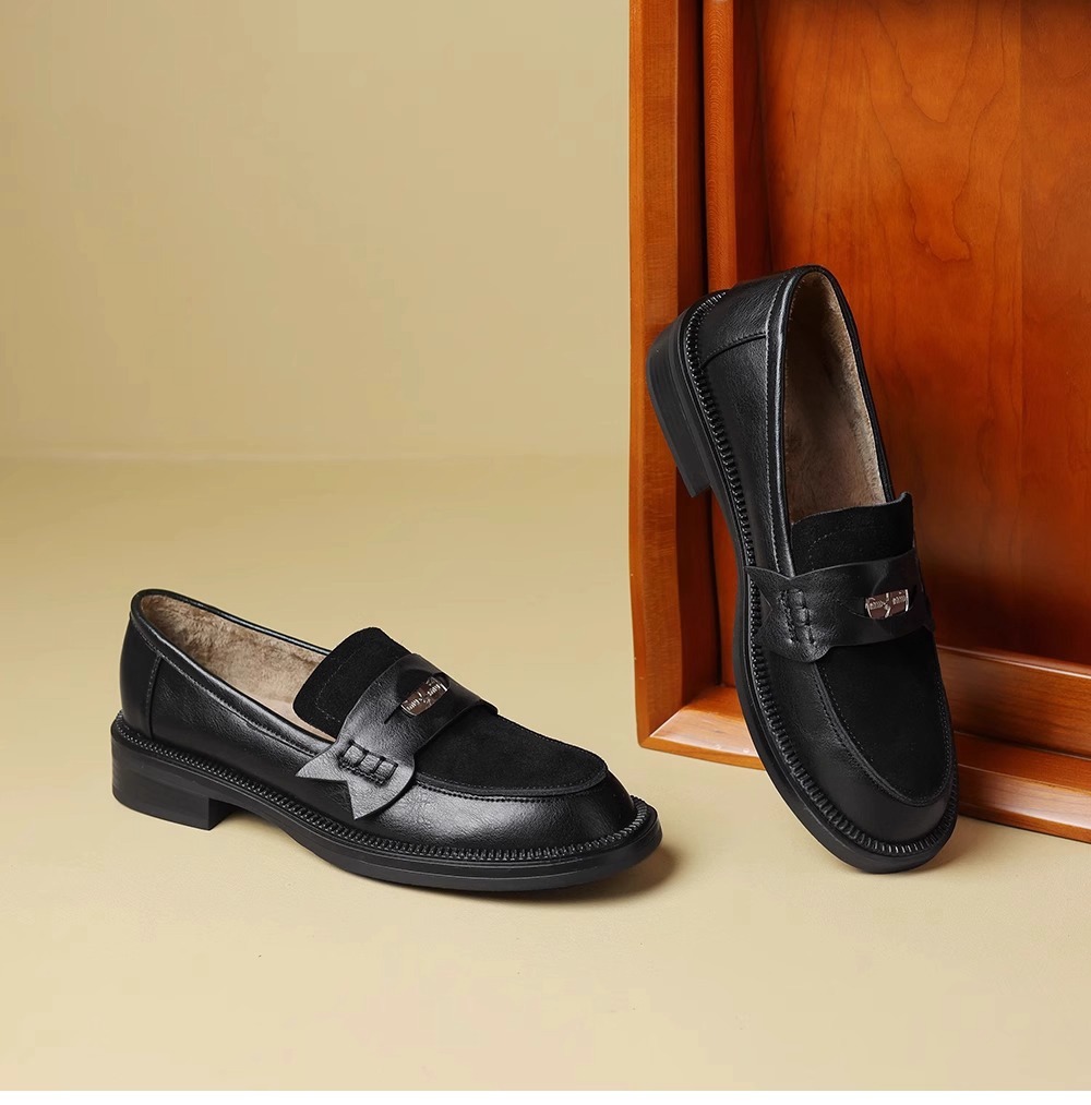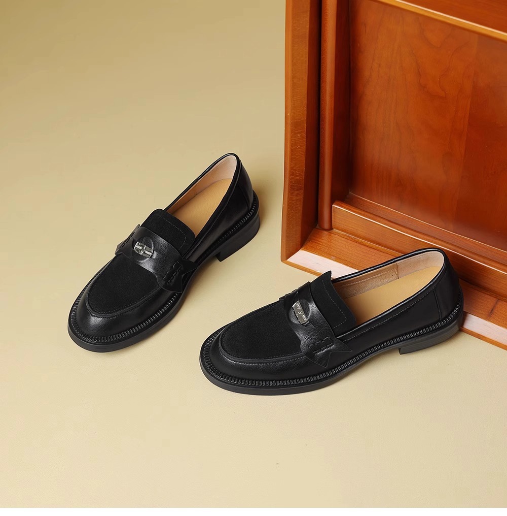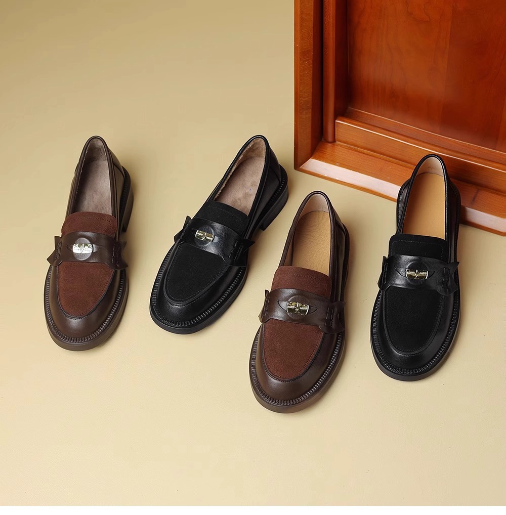 재고 있음 ~ 천연 가죽 브라운 로퍼 미드힐 싱글 슈즈 2025 신작 유럽 영국 스타일 두꺼운 굽 다용도 소형 가죽 신발스토어 가기