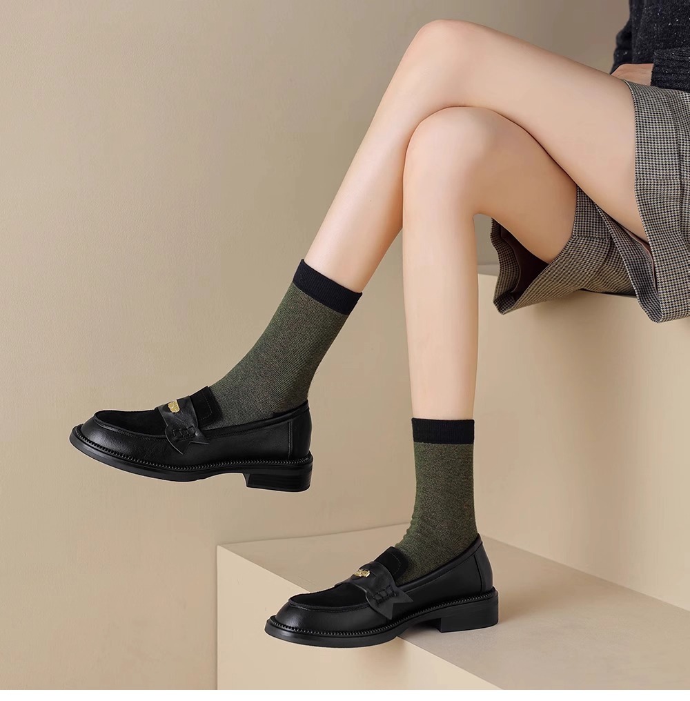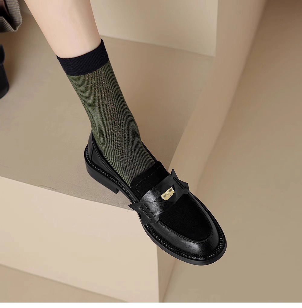 재고 있음 ~ 천연 가죽 브라운 로퍼 미드힐 싱글 슈즈 2025 신작 유럽 영국 스타일 두꺼운 굽 다용도 소형 가죽 신발