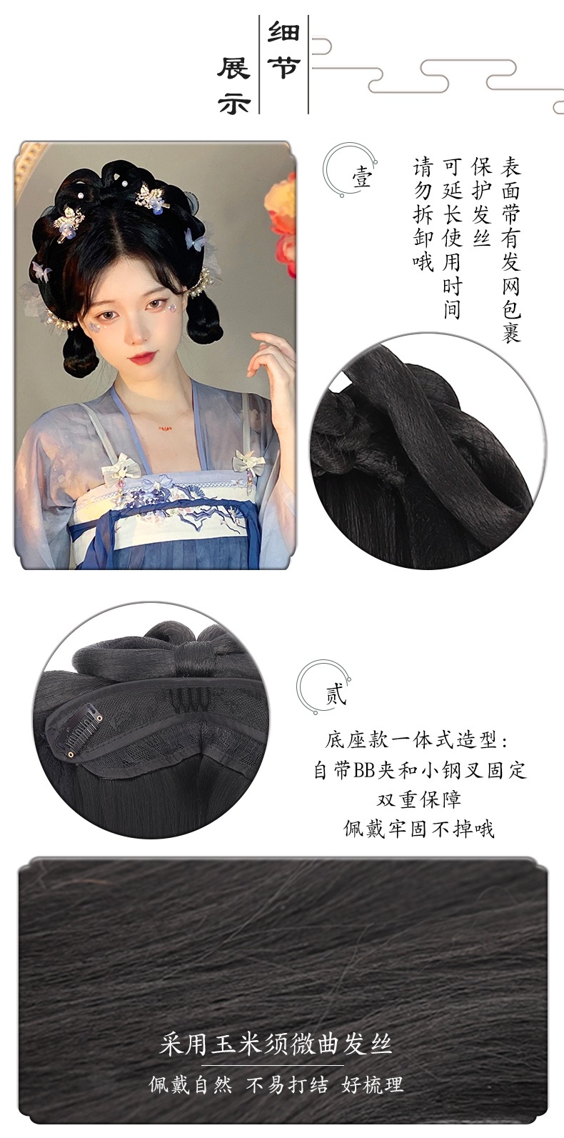고대 중국 의상 가발, 일체형 헤어밴드, 풀 헤드기어, 고대 스타일 헤드기어, 여성 스타일링 헤어스타일, 빨래머리, 헤어패드