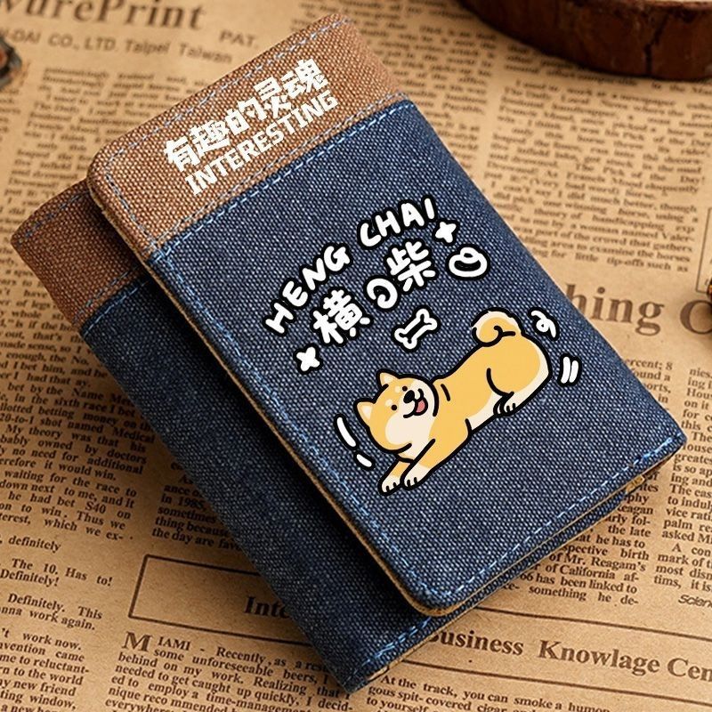 인터넷 연예인 일본 개 학생 지갑 남자 PU 짧은 만화 귀여운 청소년 성격 긴 지갑 카드 홀더스토어 가기