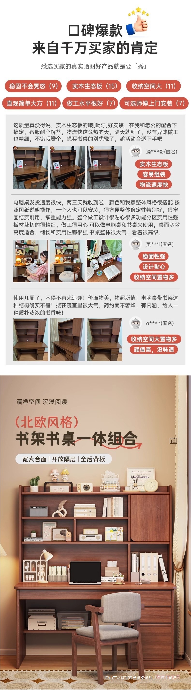 단단한 나무 생태 보드 데스크탑 컴퓨터 책상 홈 다기능 현대 간단한 학생 침실 책상 책장 통합 테이블스토어 가기