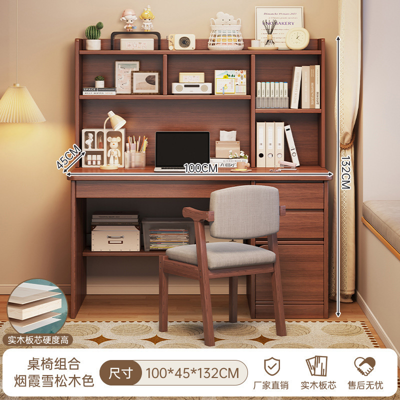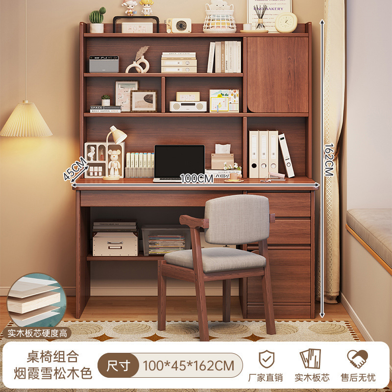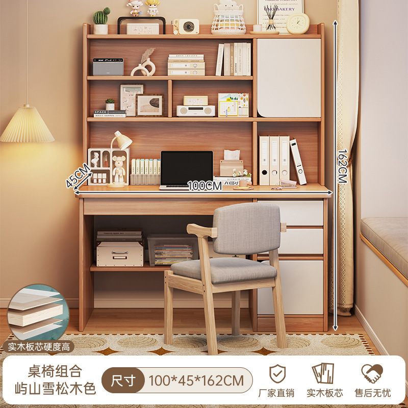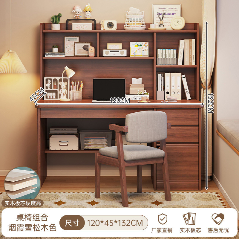 단단한 나무 생태 보드 데스크탑 컴퓨터 책상 홈 다기능 현대 간단한 학생 침실 책상 책장 통합 테이블