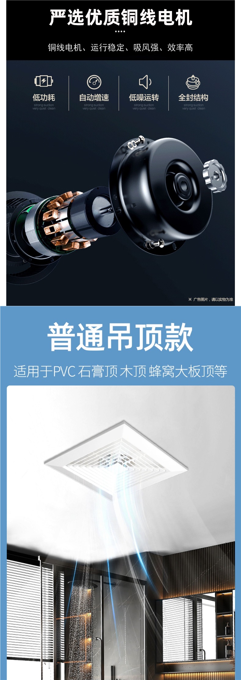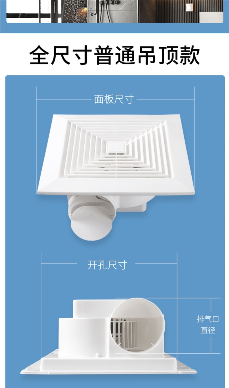 통합 천장 환기 팬 주방 욕실 천장 배기 팬 천장형 무소음 석고 보드 배기 팬