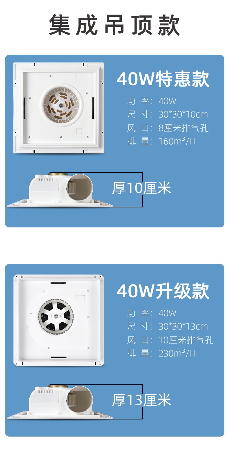 • 30*30 통합 모델, 특수 모델, 40W, 낮은 흡입력