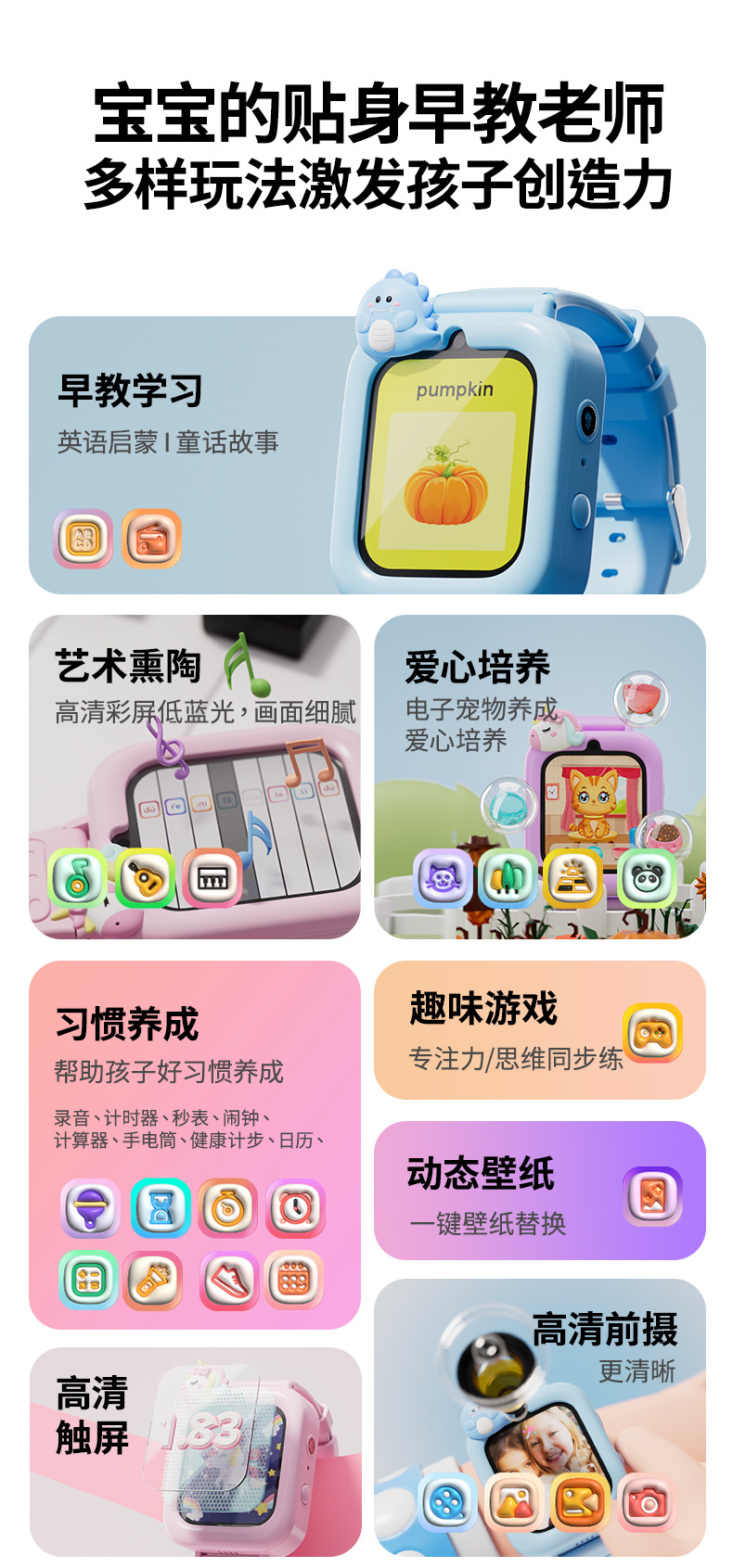 새로운 어린이 스마트 시계 터치 스크린은 사진과 비디오를 찍을 수 있습니다 소년과 소녀 다기능 조기 교육 장난감 전자 시계