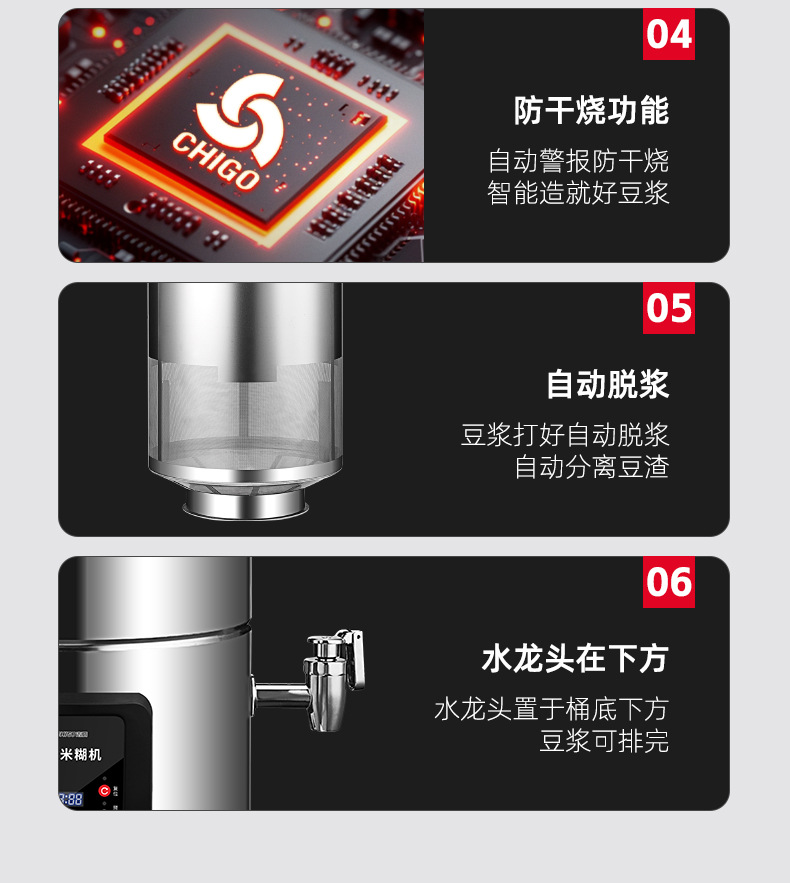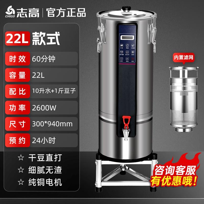 무료 배송 Chigo 완전 자동 두유 기계 상업용 캔틴 아침 식사 가게 요리 및 연삭 통합 대용량 고출력 잔류물 없음스토어 가기
