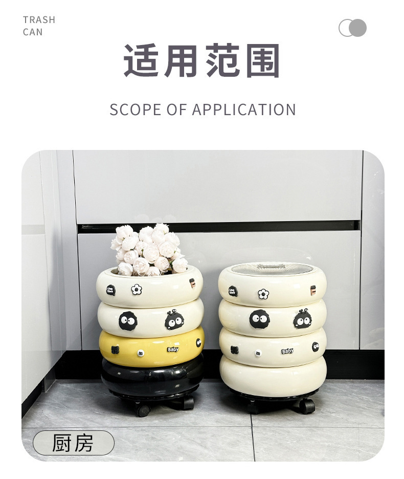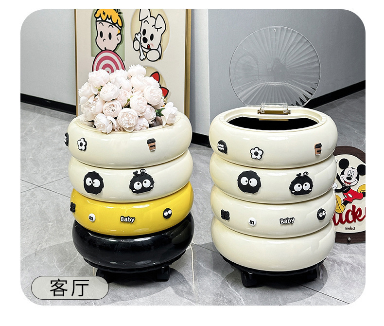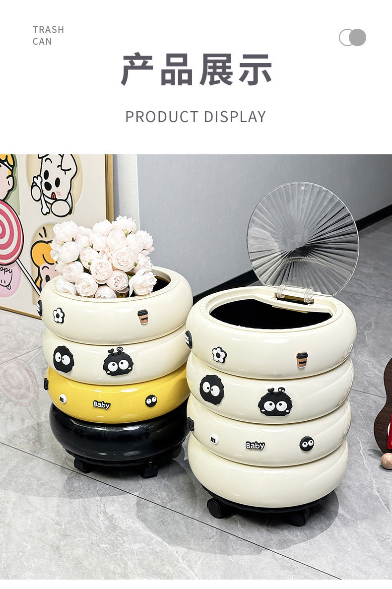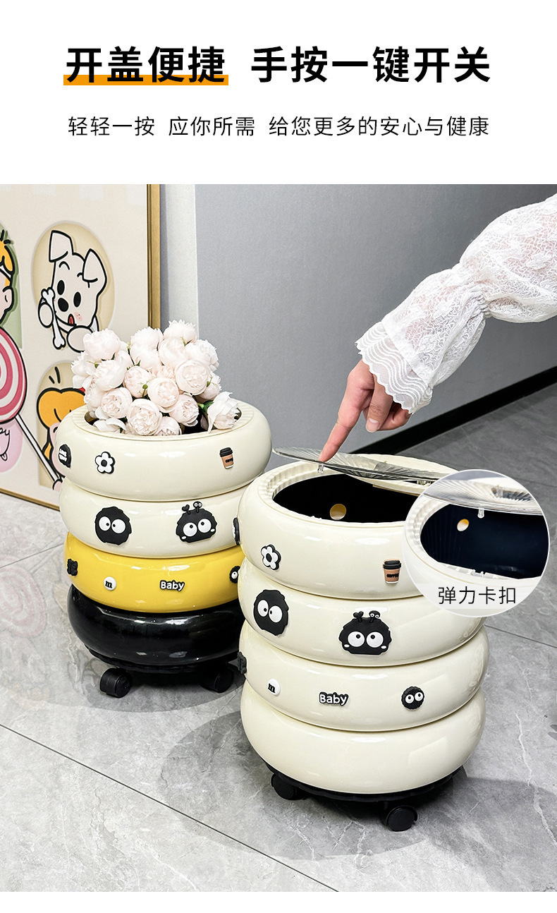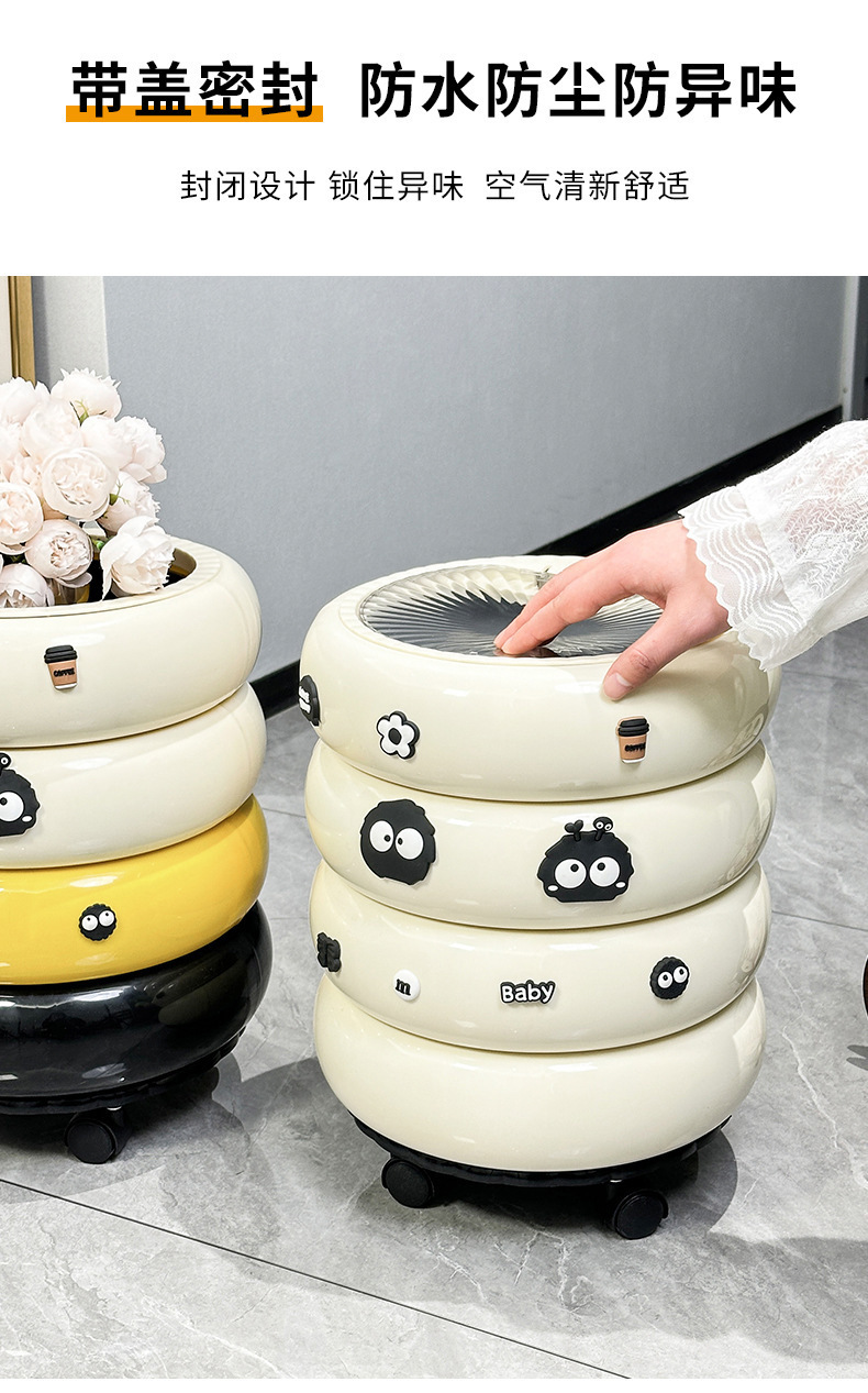 • 8136 귀여운 원형 쓰레기통 대비 색상 + 바퀴