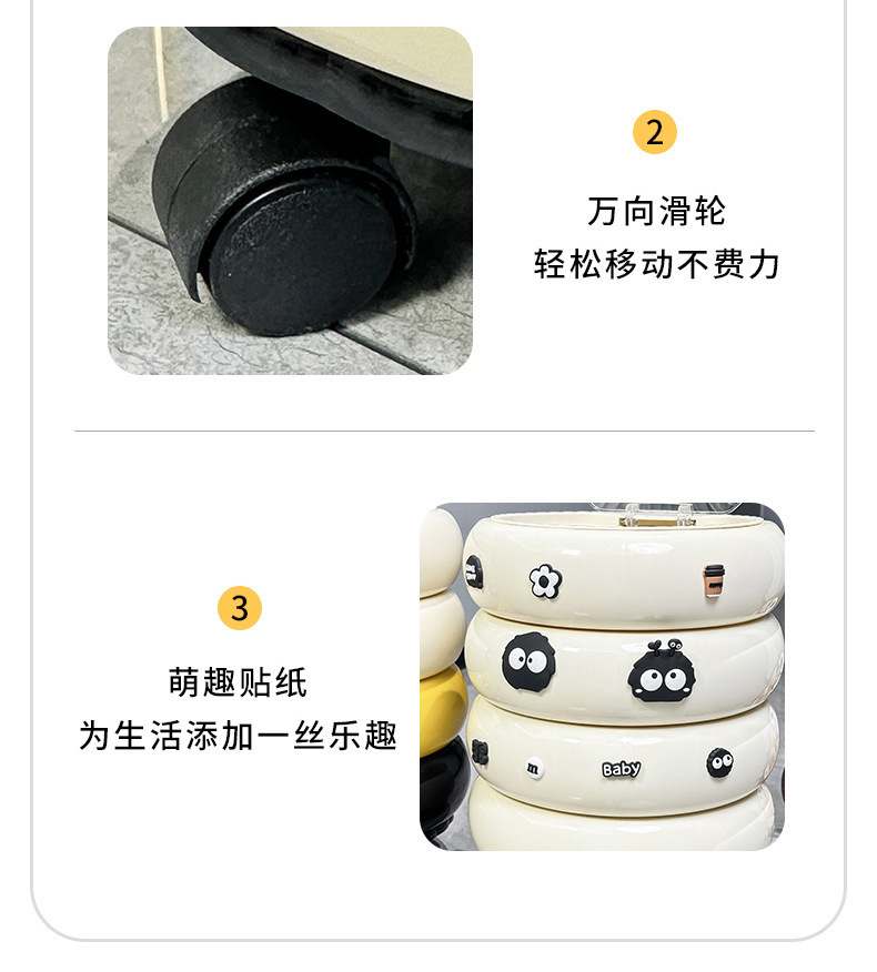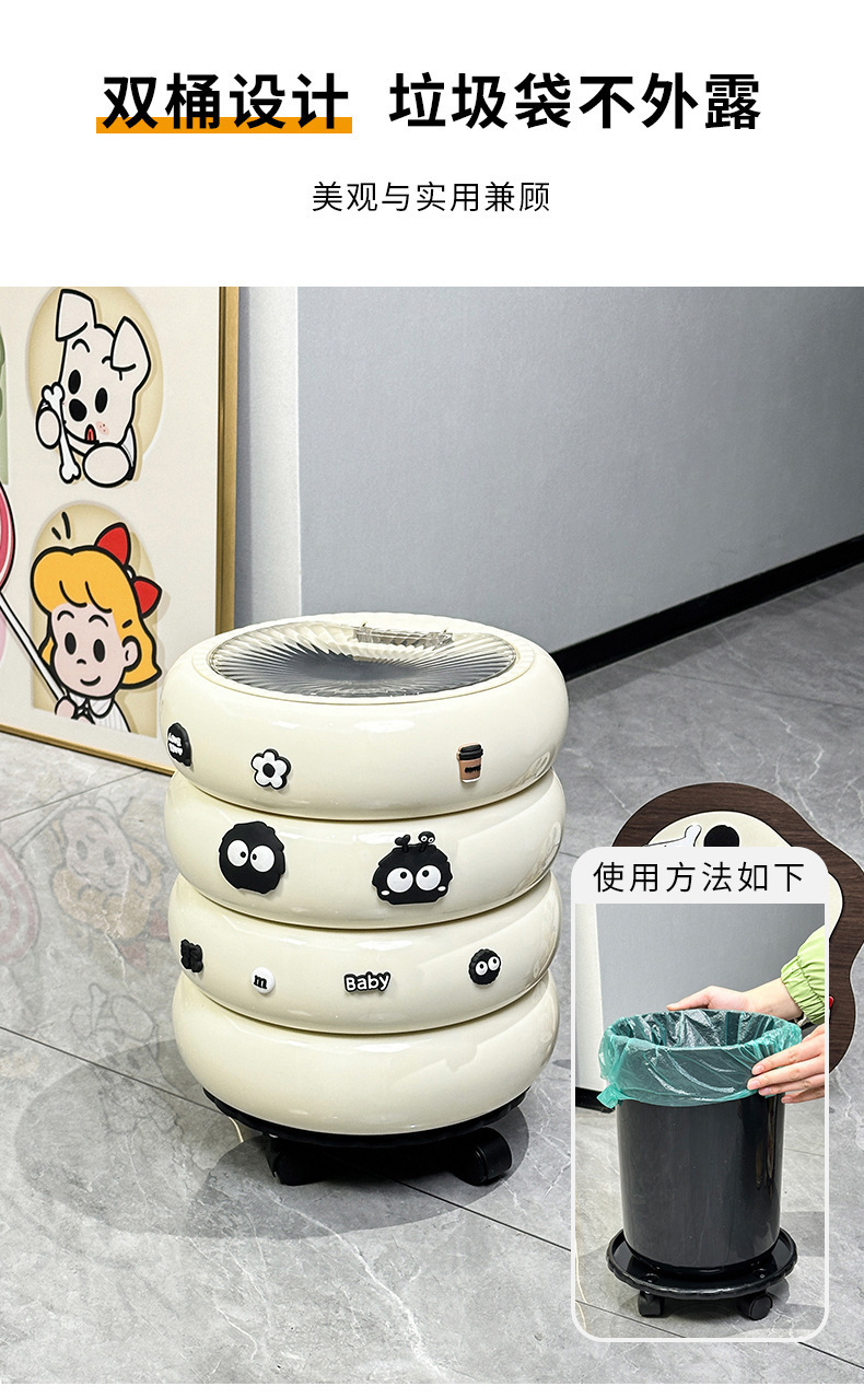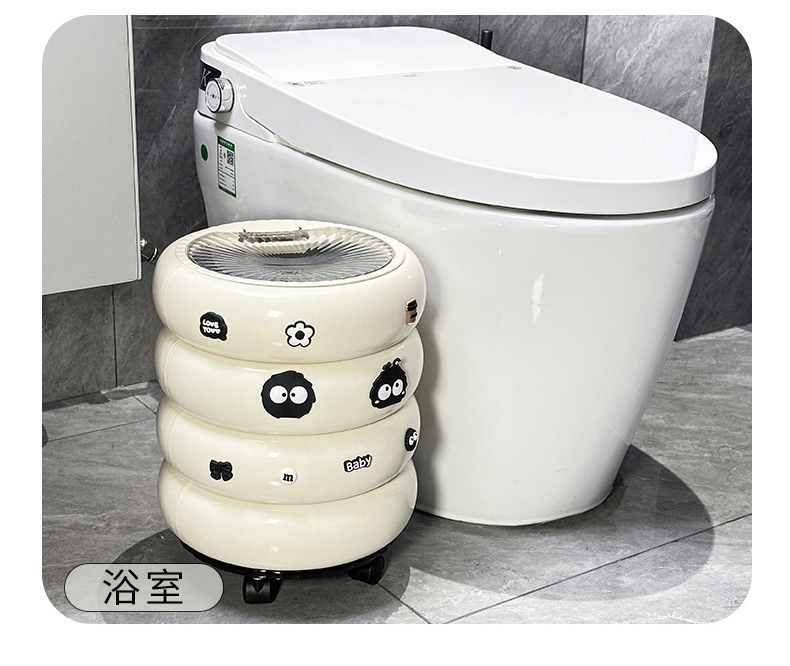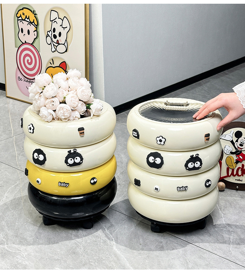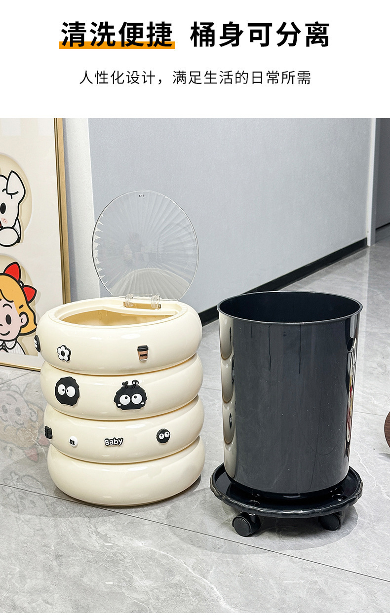• 8136 귀여운 원형 쓰레기통 대비 색상 + 바퀴