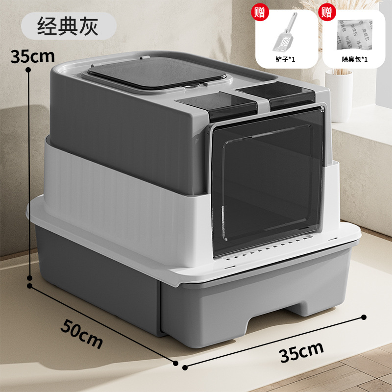 초대형 완전 밀폐형 서랍형 고양이 화장실, 가정용 탈취 및 외부 스플래시 방지 고양이 화장실, 고양이 용품