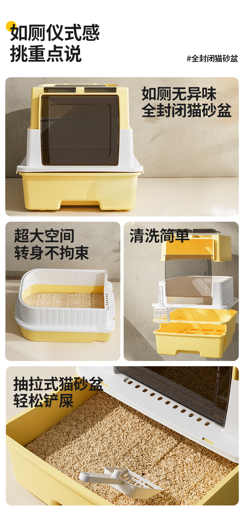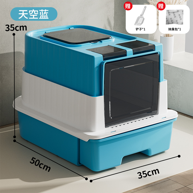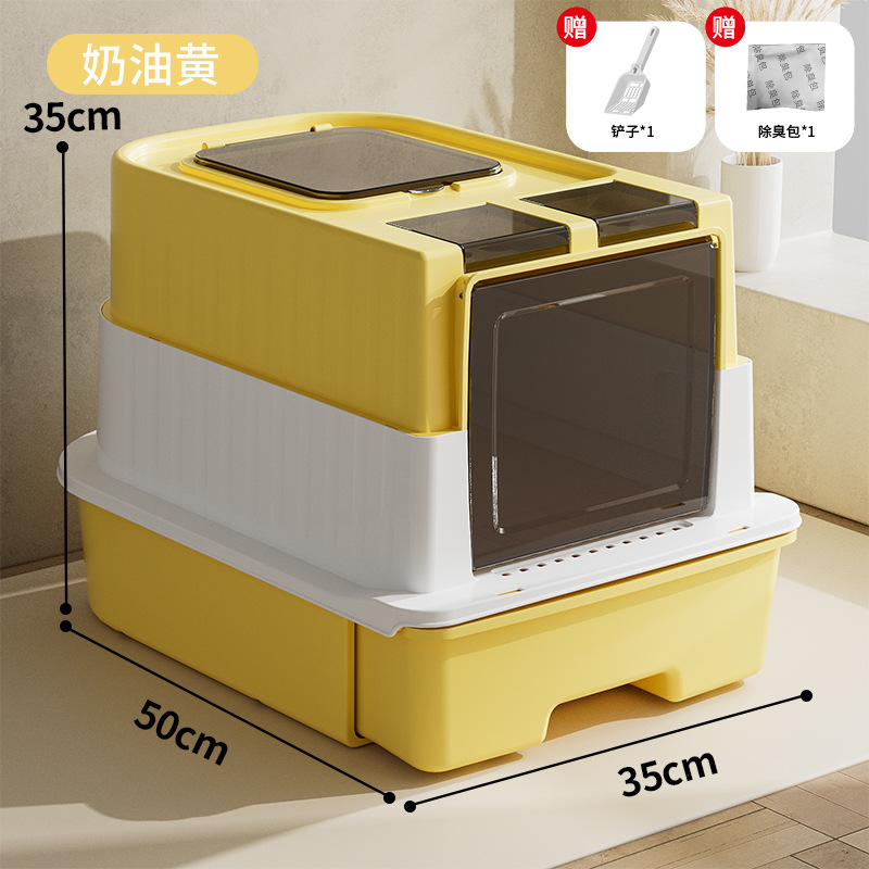 초대형 완전 밀폐형 서랍형 고양이 화장실, 가정용 탈취 및 외부 스플래시 방지 고양이 화장실, 고양이 용품스토어 가기