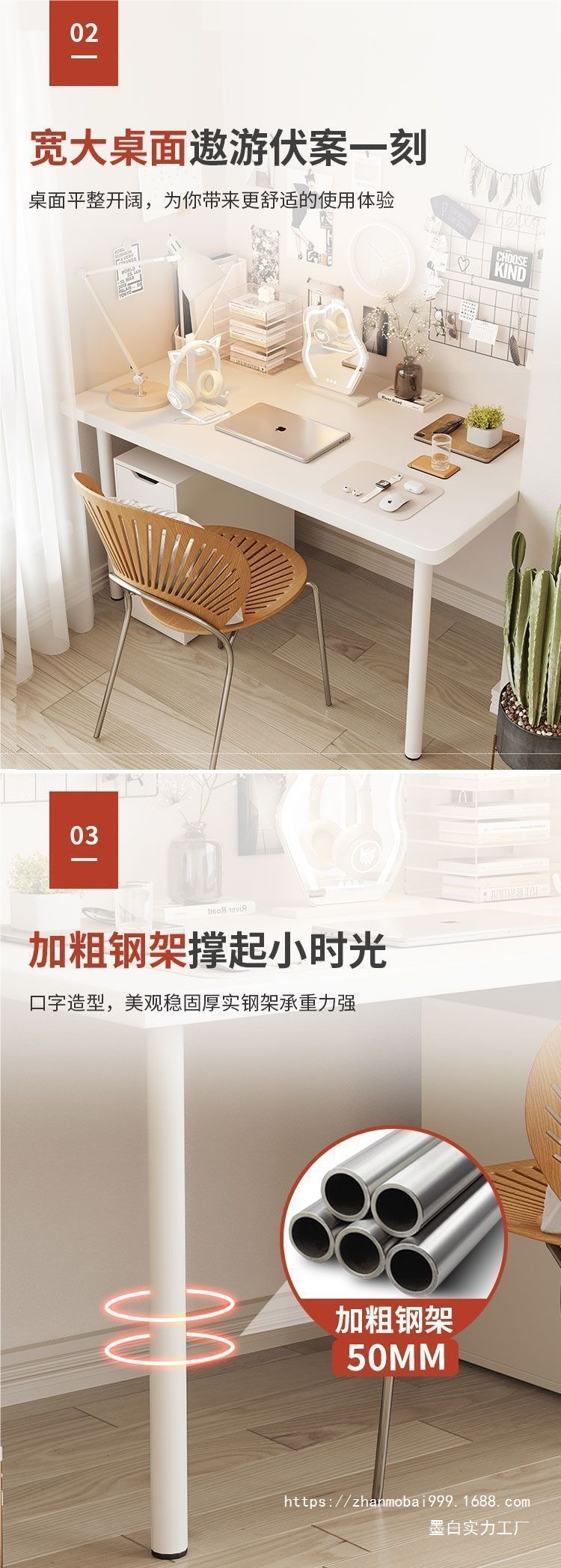 • 업그레이드된 둥근 모서리 + 두꺼운 둥근 강철 프레임 + 흰색 프레임 + 흰색 데스크탑