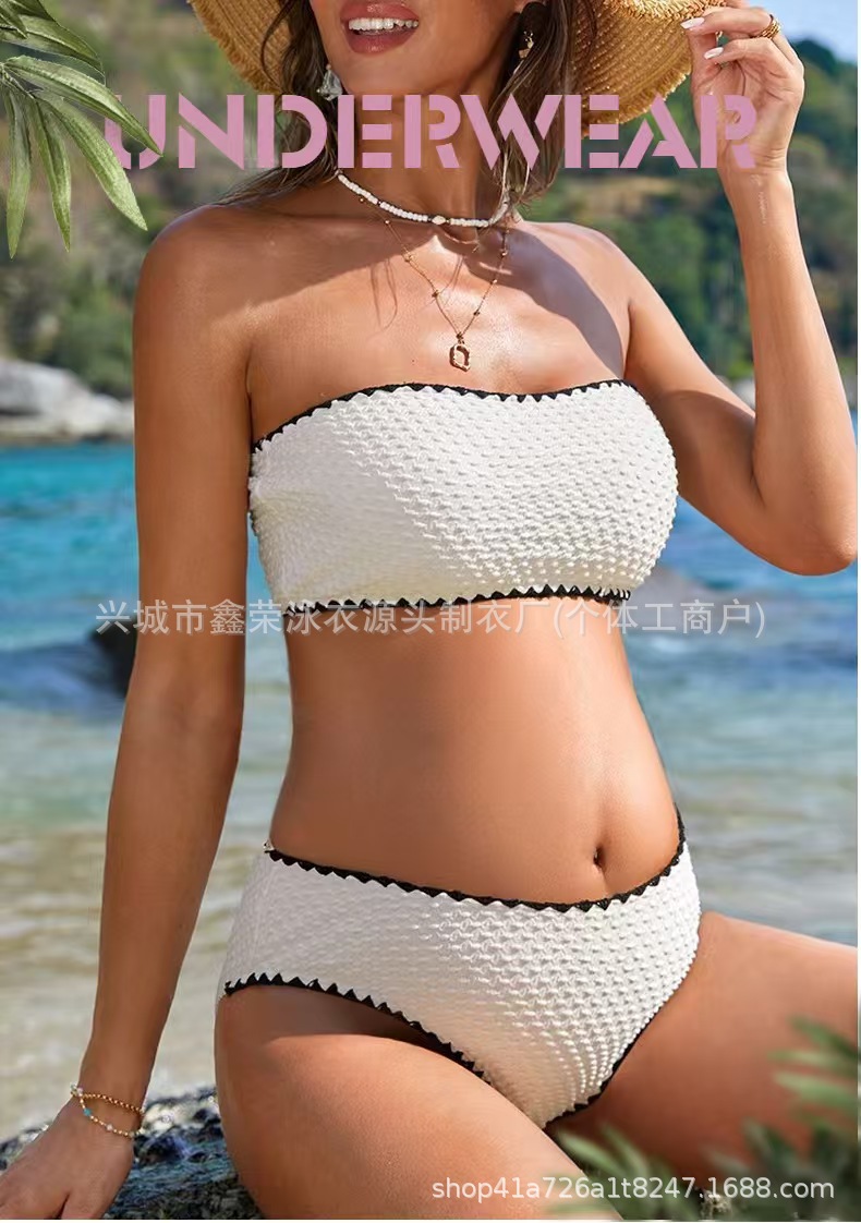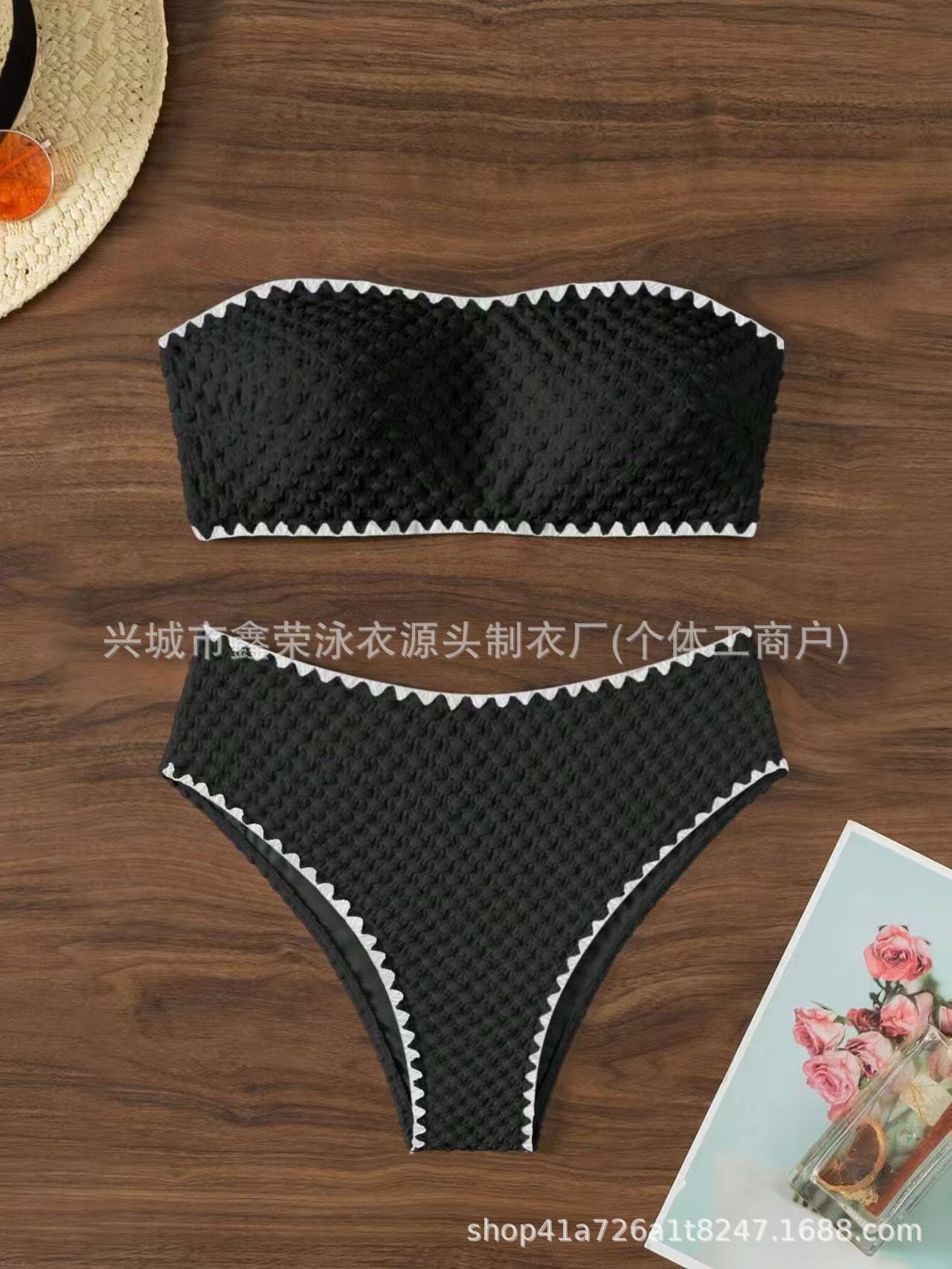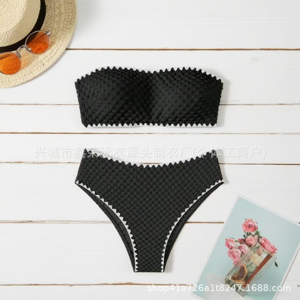 뚱뚱한 사람과 임산부를 위한 유럽과 미국의 대외 무역 수영복 플러스 사이즈 흑백 단색 고급 해변 휴가용 비키니