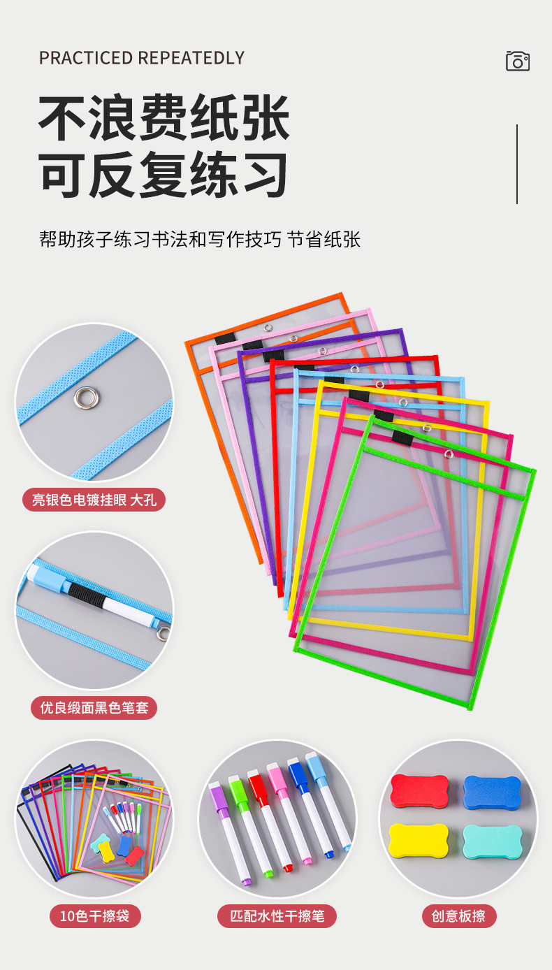 a4 지울 수있는 애완 동물/PVC 건식 지우기 파일 가방 플라스틱 교수형 재료 가방 학생 시험지 보관 가방 지울 수있는 가방
