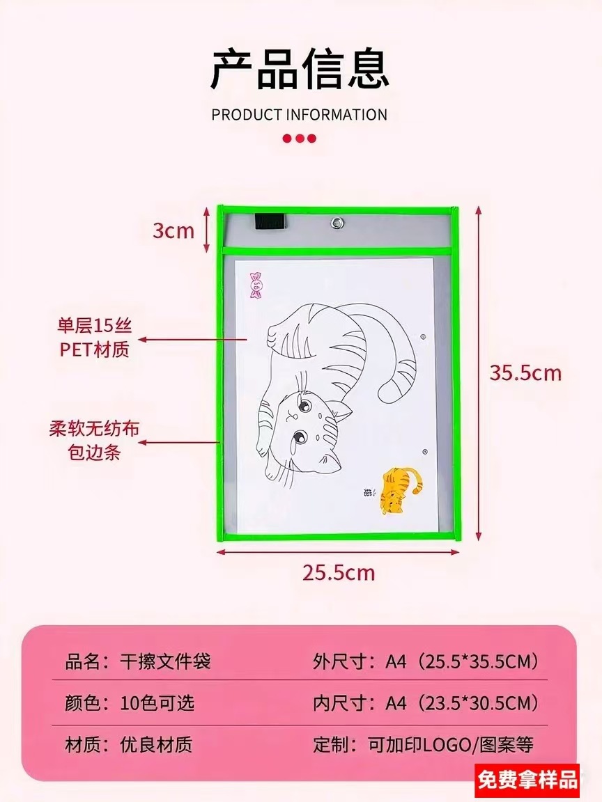 a4 지울 수있는 애완 동물/PVC 건식 지우기 파일 가방 플라스틱 교수형 재료 가방 학생 시험지 보관 가방 지울 수있는 가방스토어 가기
