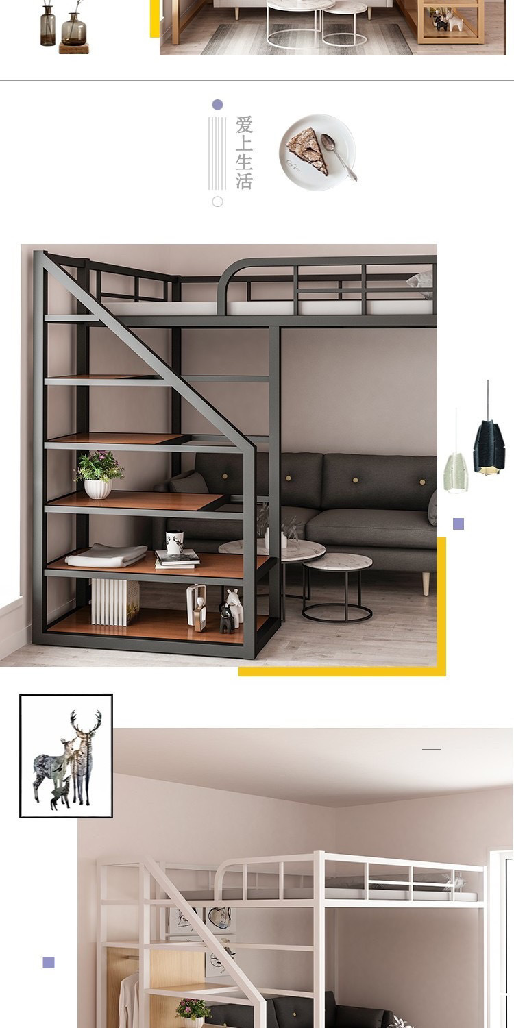 소형 복층 철제 침대, 2층 로프트, 2층 다기능 철제 침대, 높낮이 침대, 공간 절약형 로프트 침대