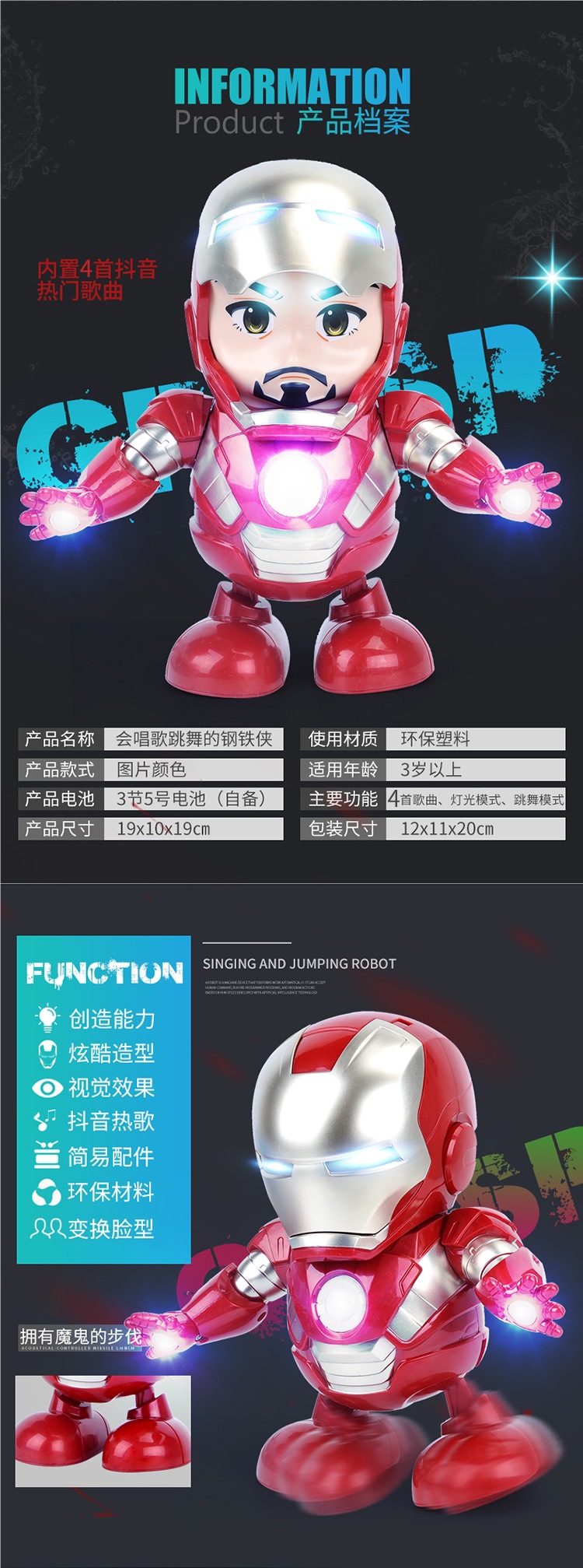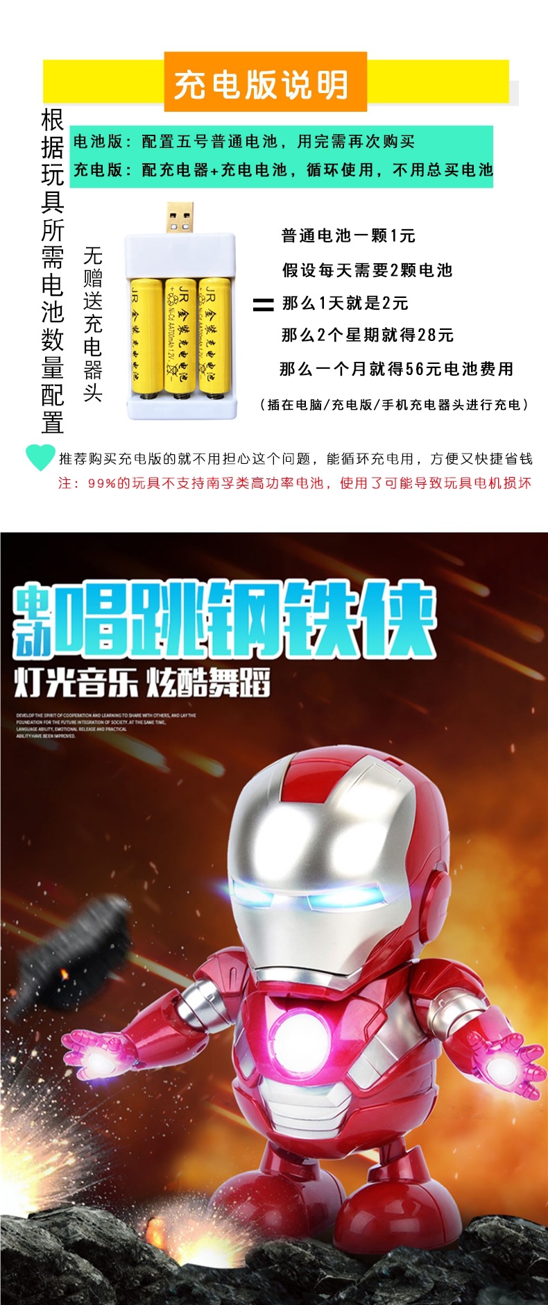 어린이를위한 전기 노래와 춤 아이언 맨 로봇 장난감 소년 아기 0 ~ 1 세 2 소녀 아기 3 소년스토어 가기