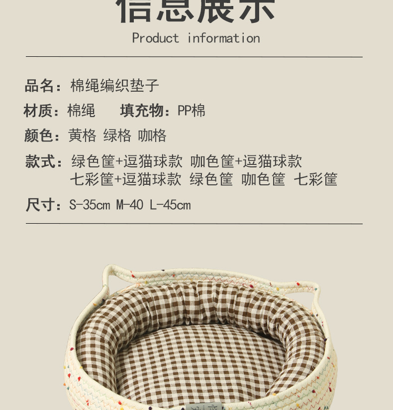 • 녹색 면 로프 둥지 + 노란색 격자 매트 + 베개