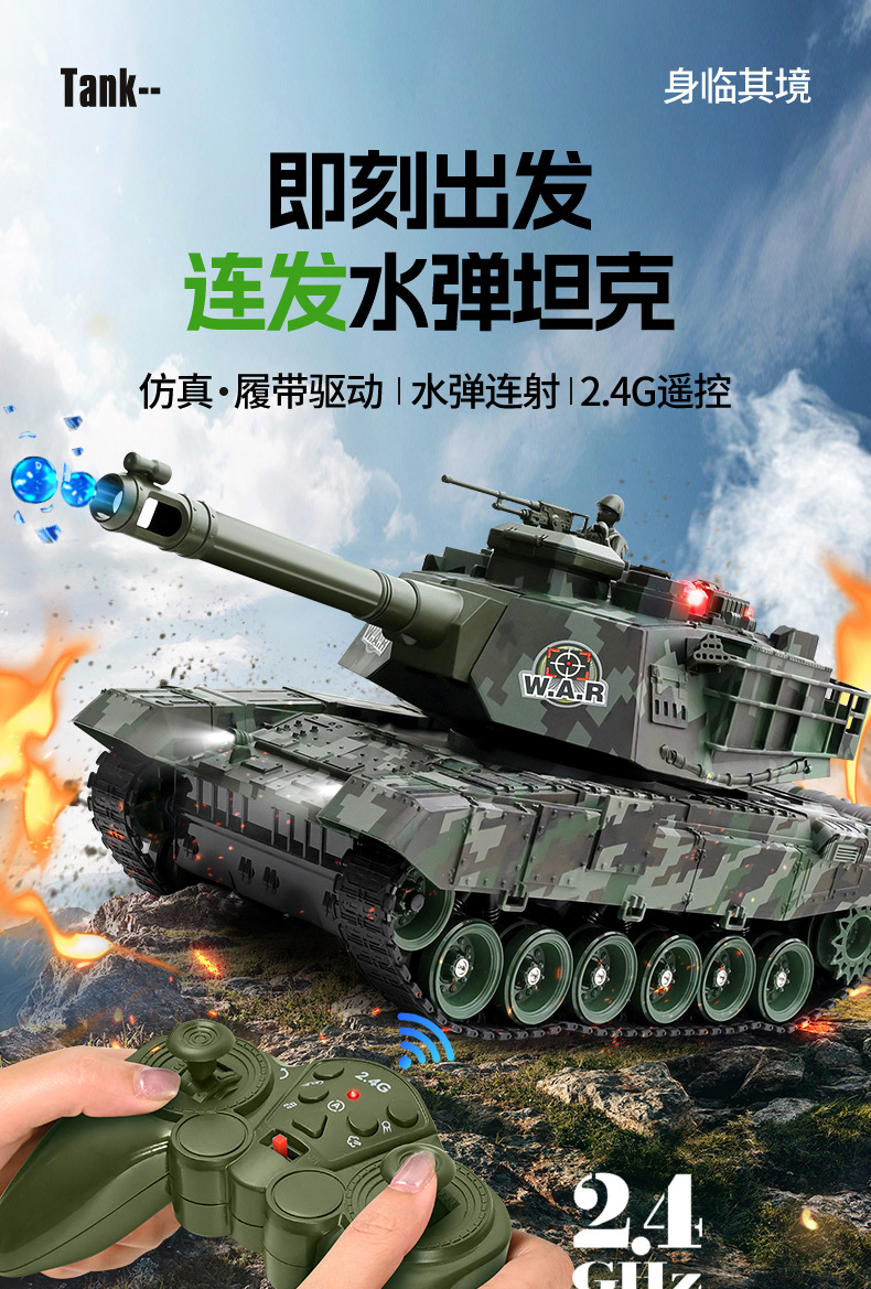 원격 제어 탱크 자동차 크롤러 어린이 전기 오프로드 중국 99 총을 쏘는 모델 소년 물폭탄 장난감 자동차스토어 가기