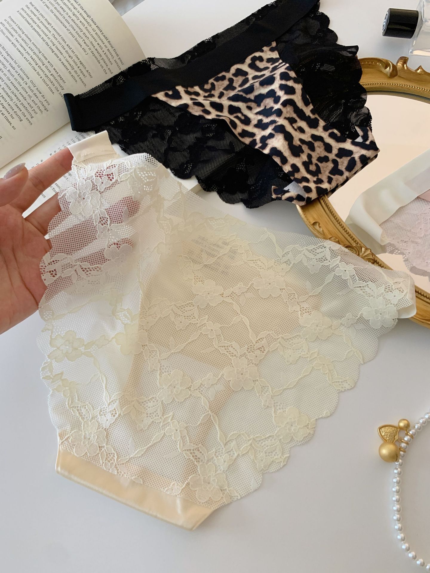 스포츠 밀크 레오파드 ~ 소녀들을 위한 섹시한 아이스 실크 속옷, 로우 웨이스트 레오파드 프린트 퓨어 레이스 하이 슬릿 여성용 심리스 팬티