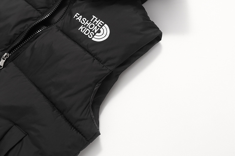 25 새로운 가을, 겨울 아동 의류 소년과 소녀를위한 후드 컬러 블록 다운 코튼 조끼 중대형 아동용 조끼스토어 가기