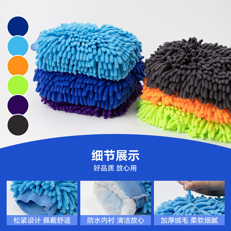 두꺼운 스펀지 자동차 닦기, 흡수성 셔닐 자동차 세척 및 먼지 제거 장갑, 양면 두꺼운 자동차 청소 용품