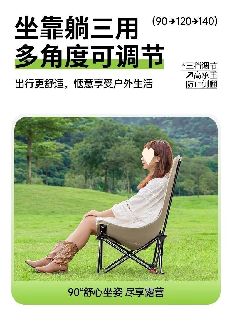 야외 접이식 달 의자 3단 조절 안락 의자 야외 의자 피크닉 휴대용 캠핑 의자 점심 휴식 해변 의자스토어 가기