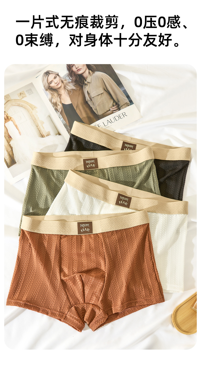 아이스 실크 남성 속옷, 나일론 아이스 실크 속옷, 메쉬 통기성 초박형 남성용 아이스 실크 항균 속옷, 복서 팬티스토어 가기