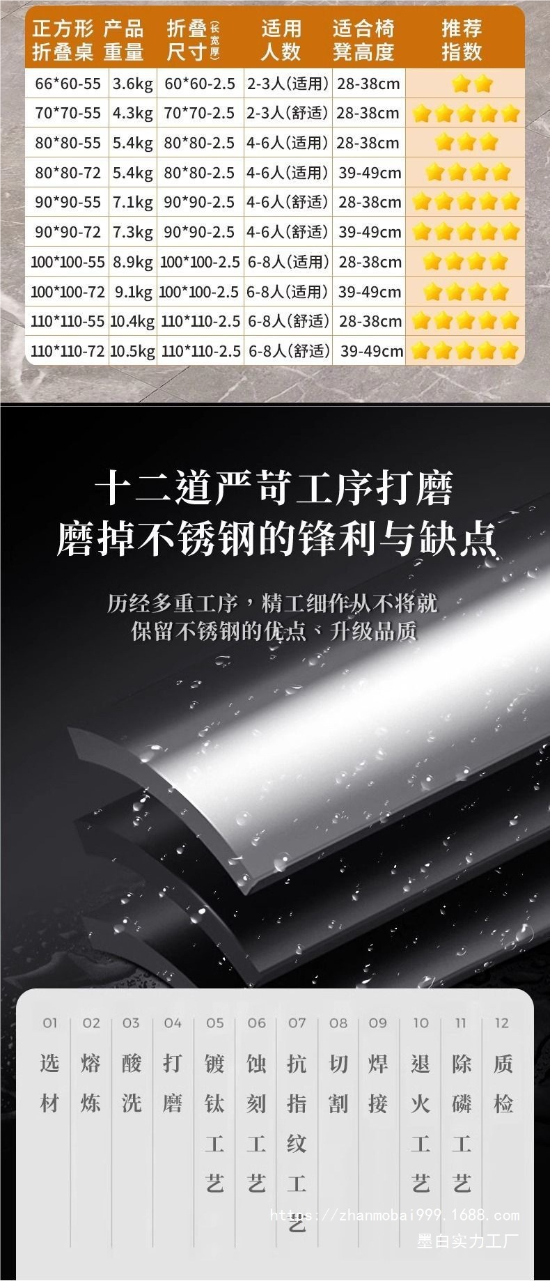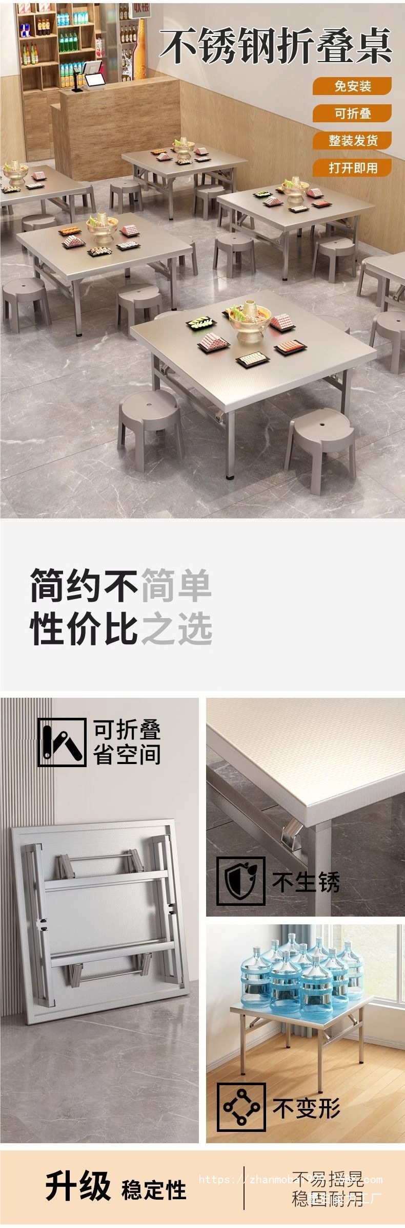 스테인레스 스틸 사각 테이블 접이식 테이블 호텔 테이블 야외 테이블 댐 연회 스톨 홈 다이닝 사각 테이블스토어 가기