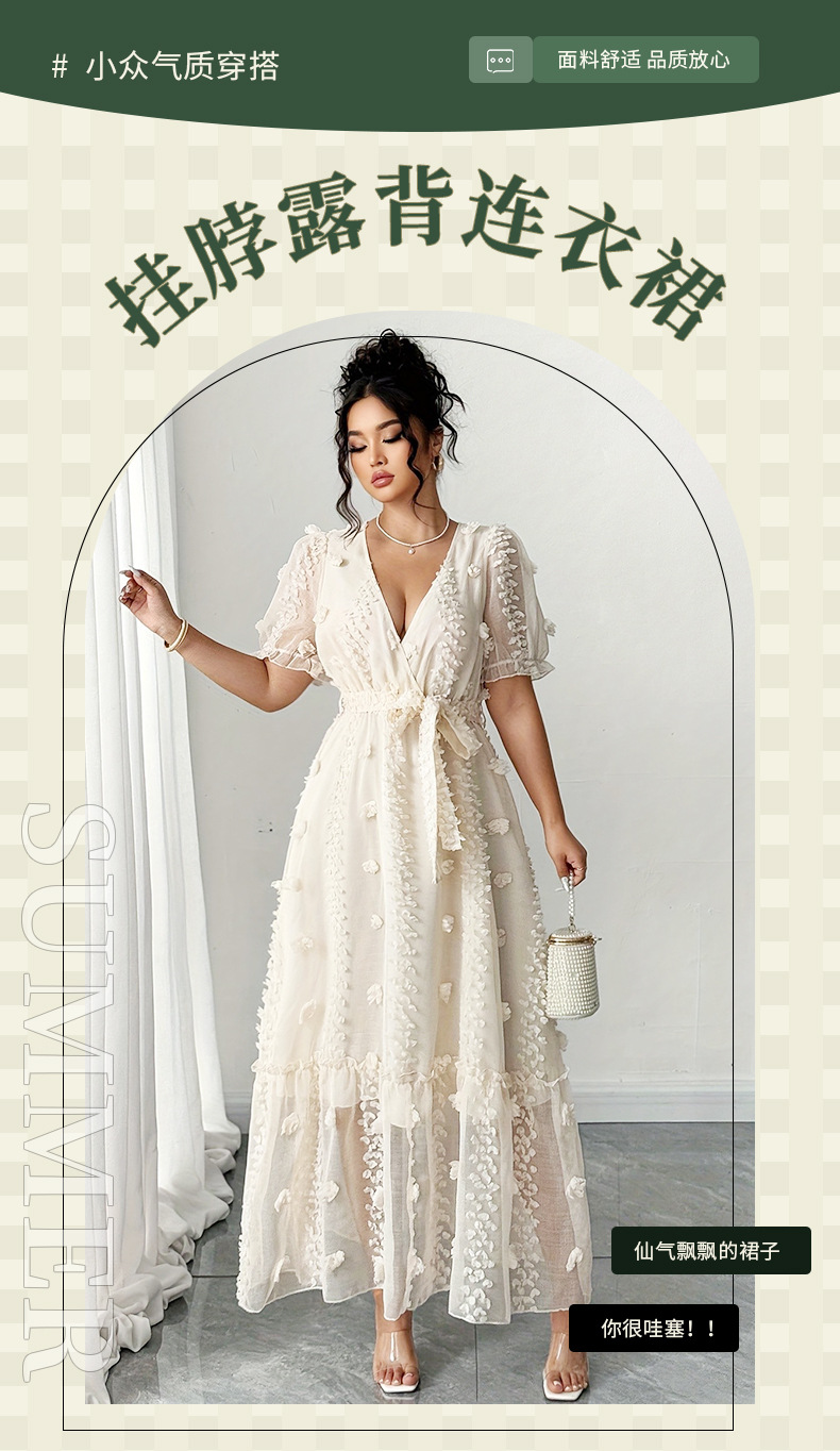 2025 가을 신상 유럽 및 미국 아마존 자수 롱 드레스 홀터넥 백리스 드레스 슬릿 드레스스토어 가기