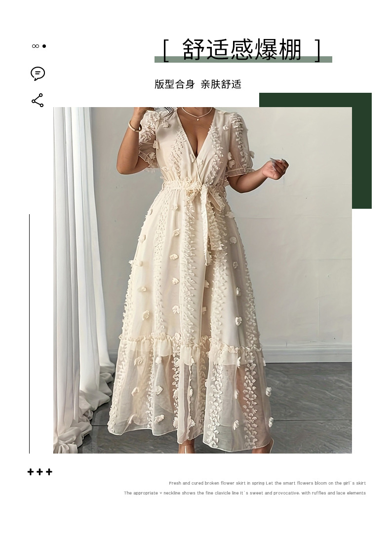 2025 가을 신상 유럽 및 미국 아마존 자수 롱 드레스 홀터넥 백리스 드레스 슬릿 드레스