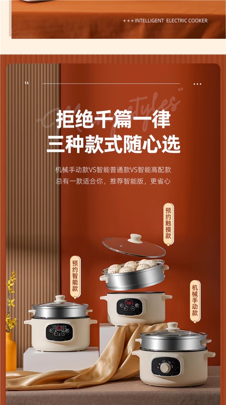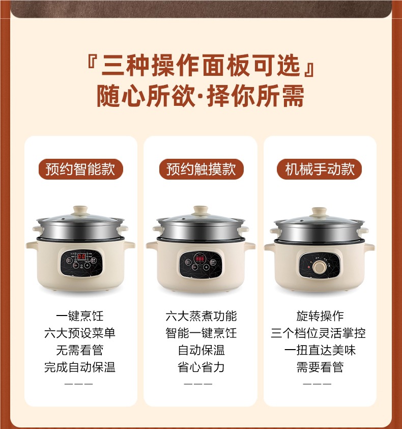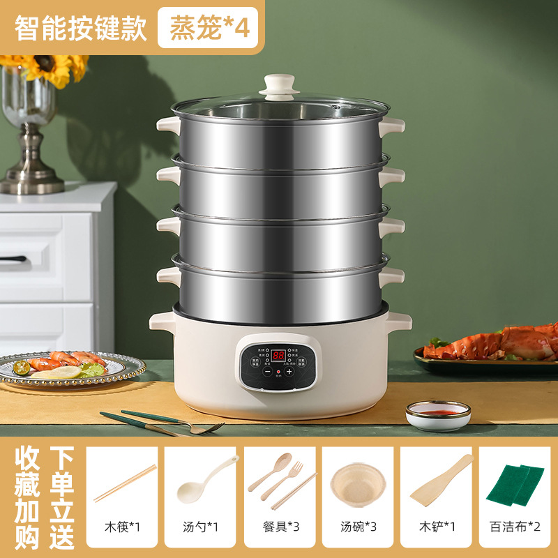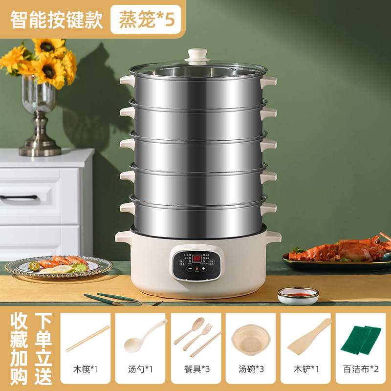 예약 타이머 전기 찜통, 다기능 가정용 대용량 3층 전기 찜통, 다층 찐빵 스마트 찜통