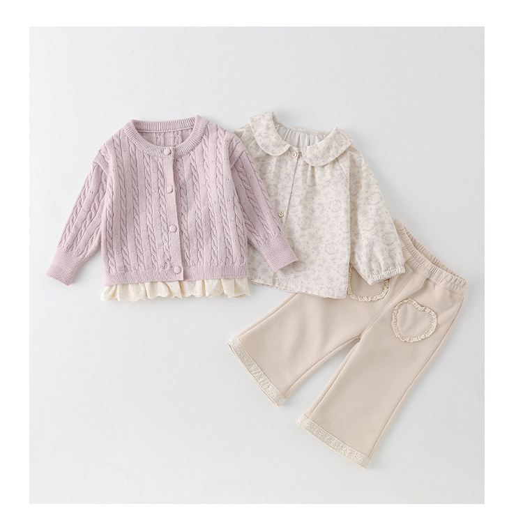 여아복 가을옷 2026 신상 귀여운 여아용 인형풍 스웨터 가을 아동 바지 3종 세트 A급