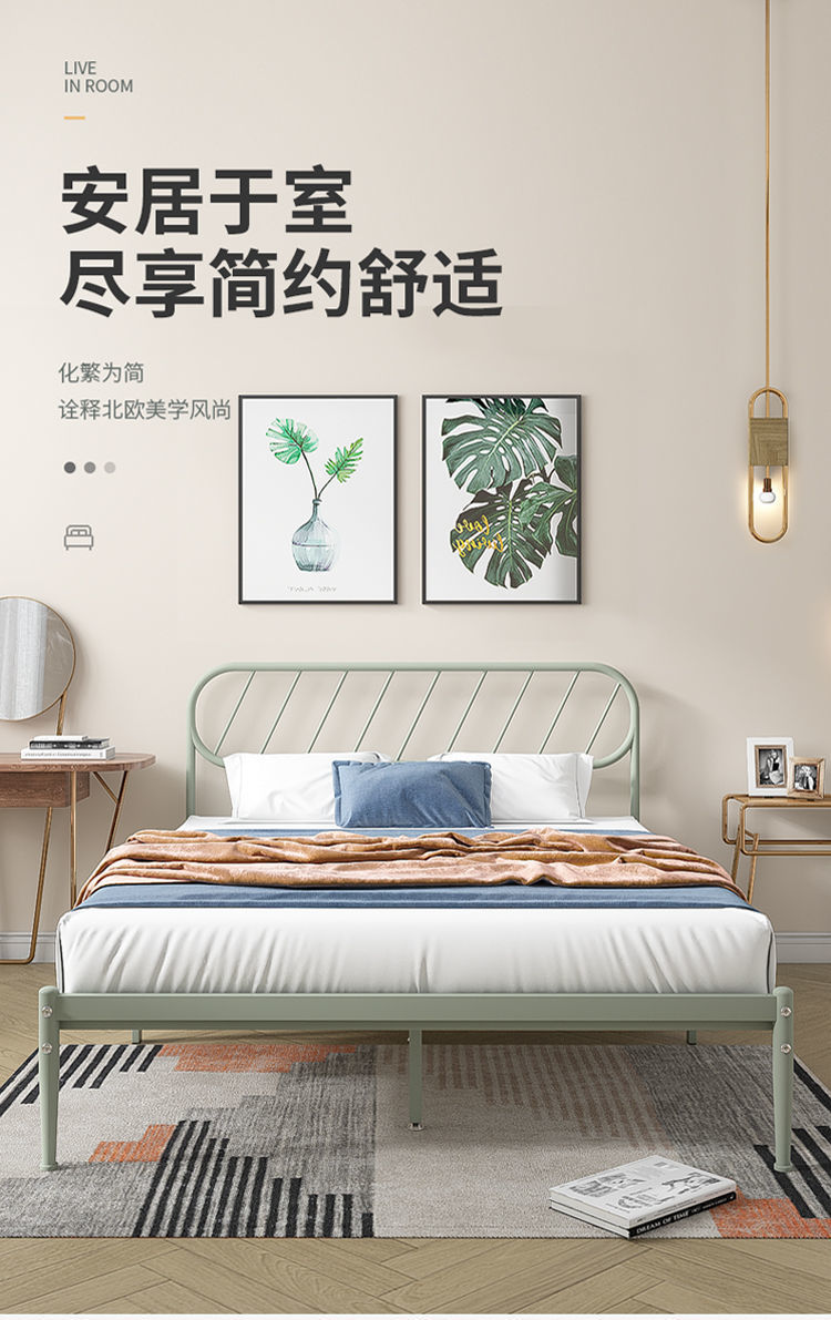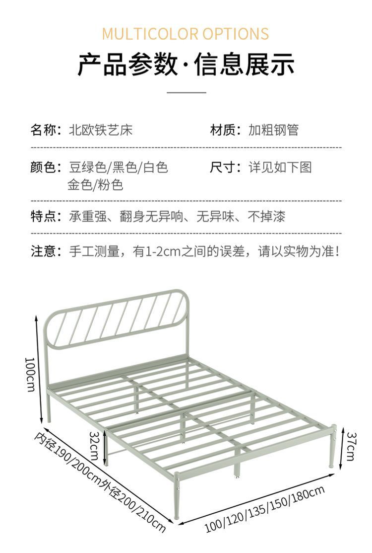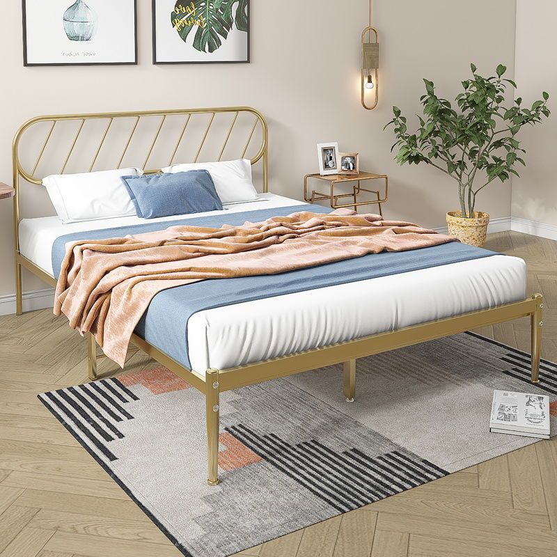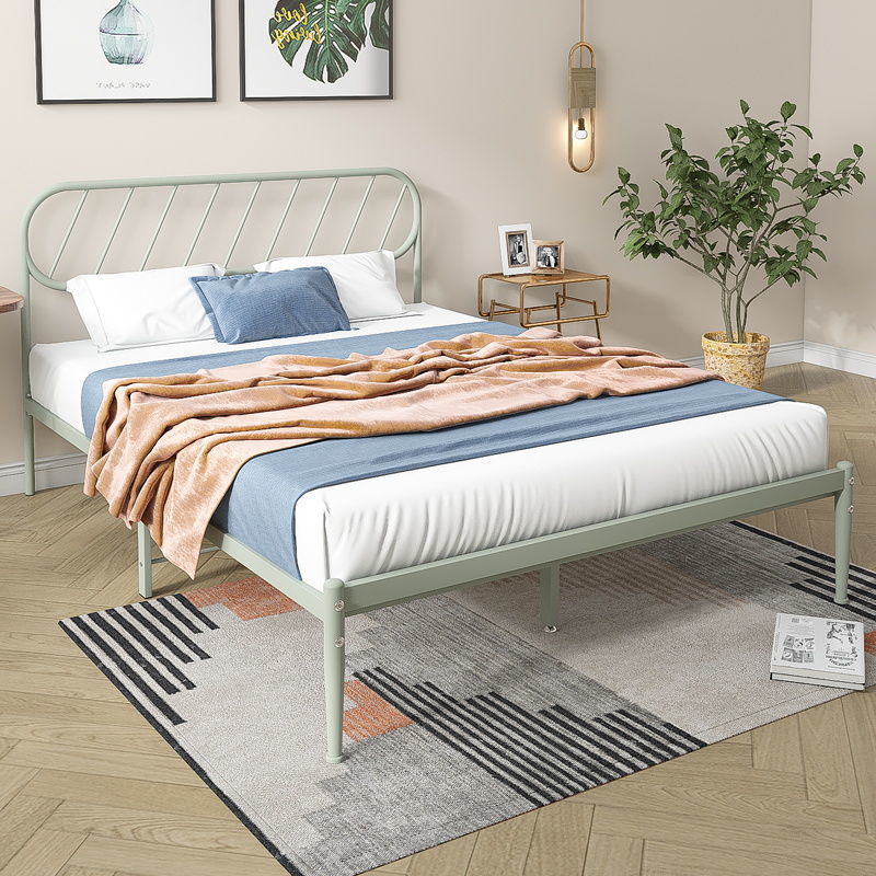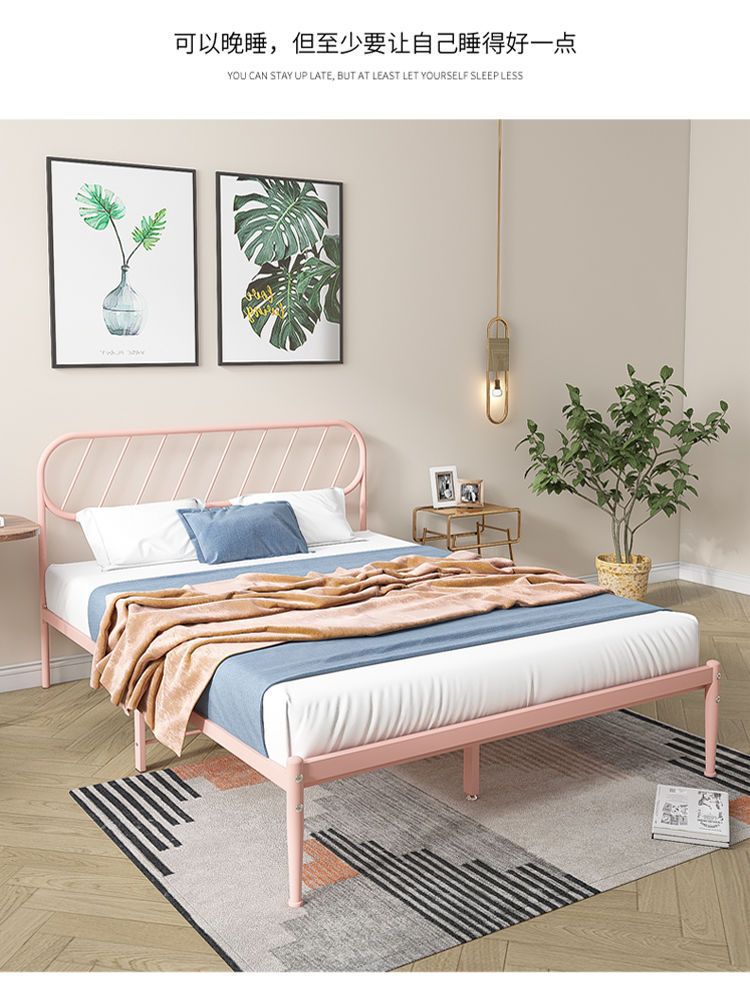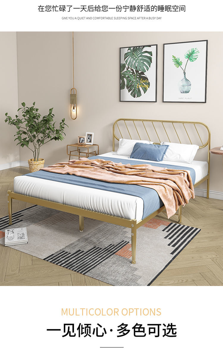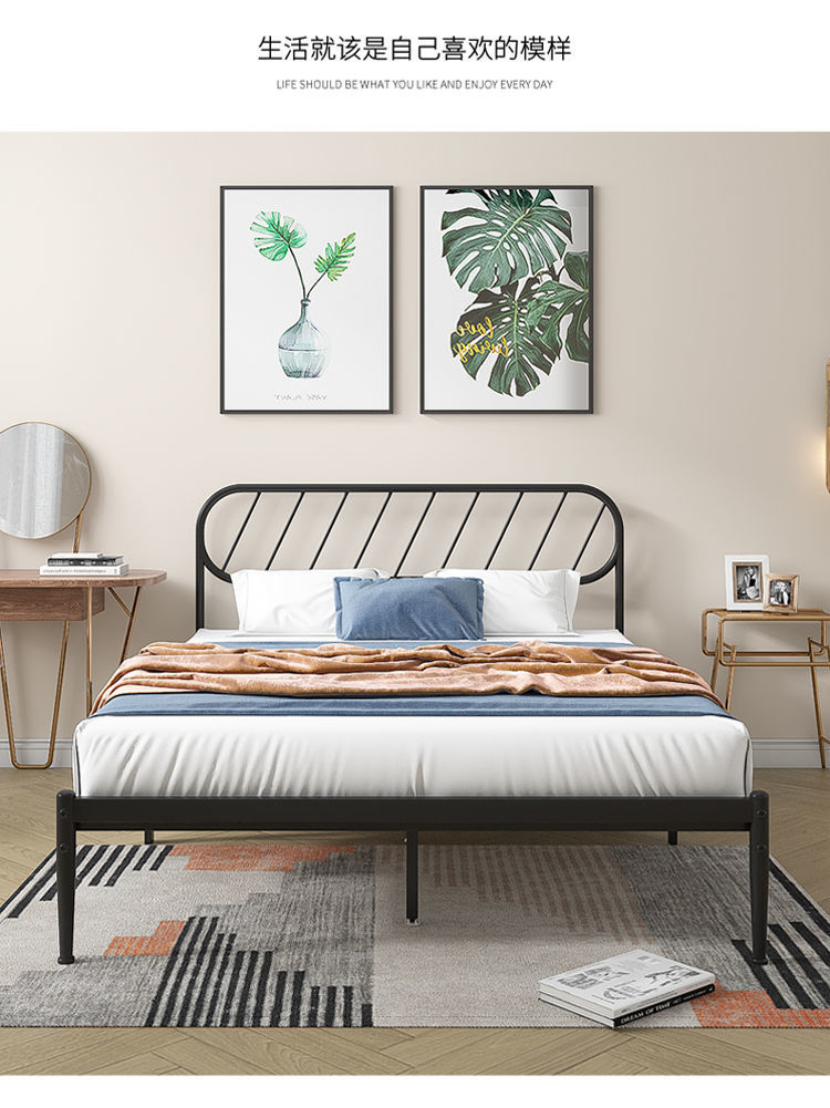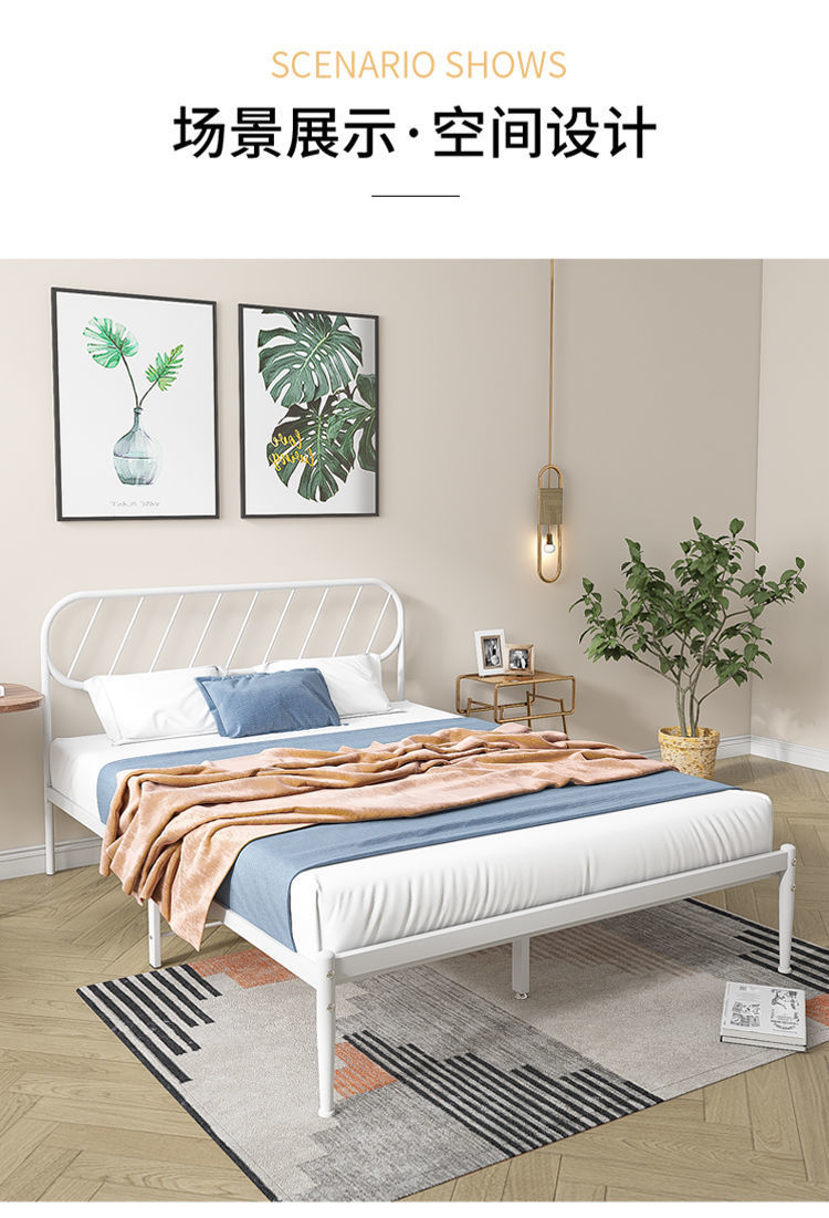 철제 침대 더블 침대 현대적인 미니멀리스트 기숙사 싱글 철제 프레임 침대 아파트 카우버 두꺼운 강화 철제 침대스토어 가기