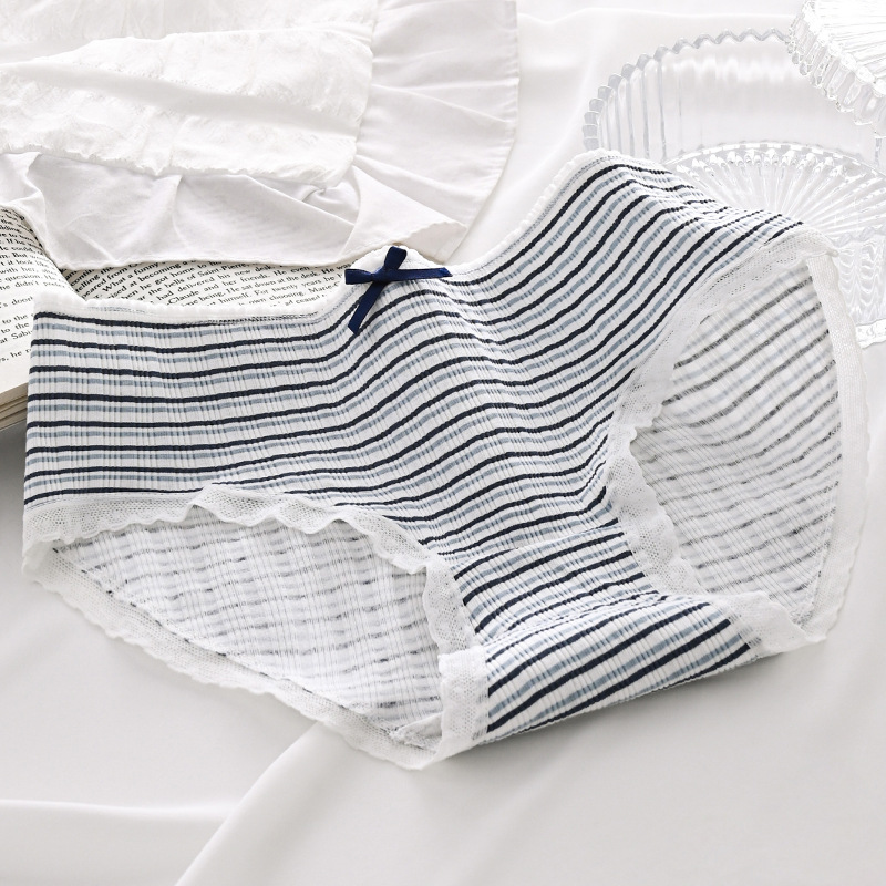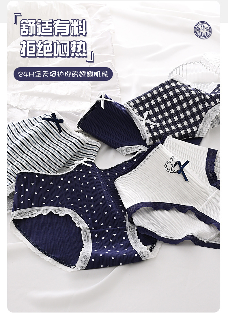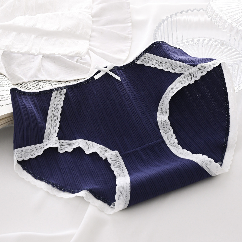 귀여운 네이비 블루 일본 여성 속옷 달콤한 여름 얇은 소녀 중간 허리 학생 팬티 국경 간 전자 상거래스토어 가기