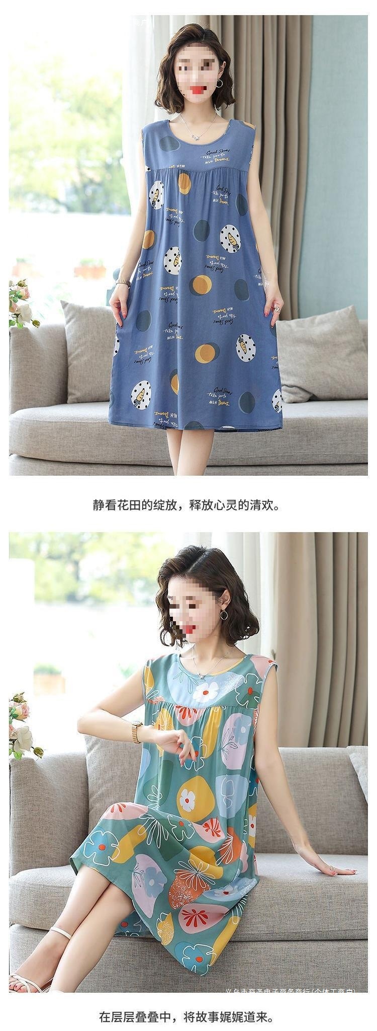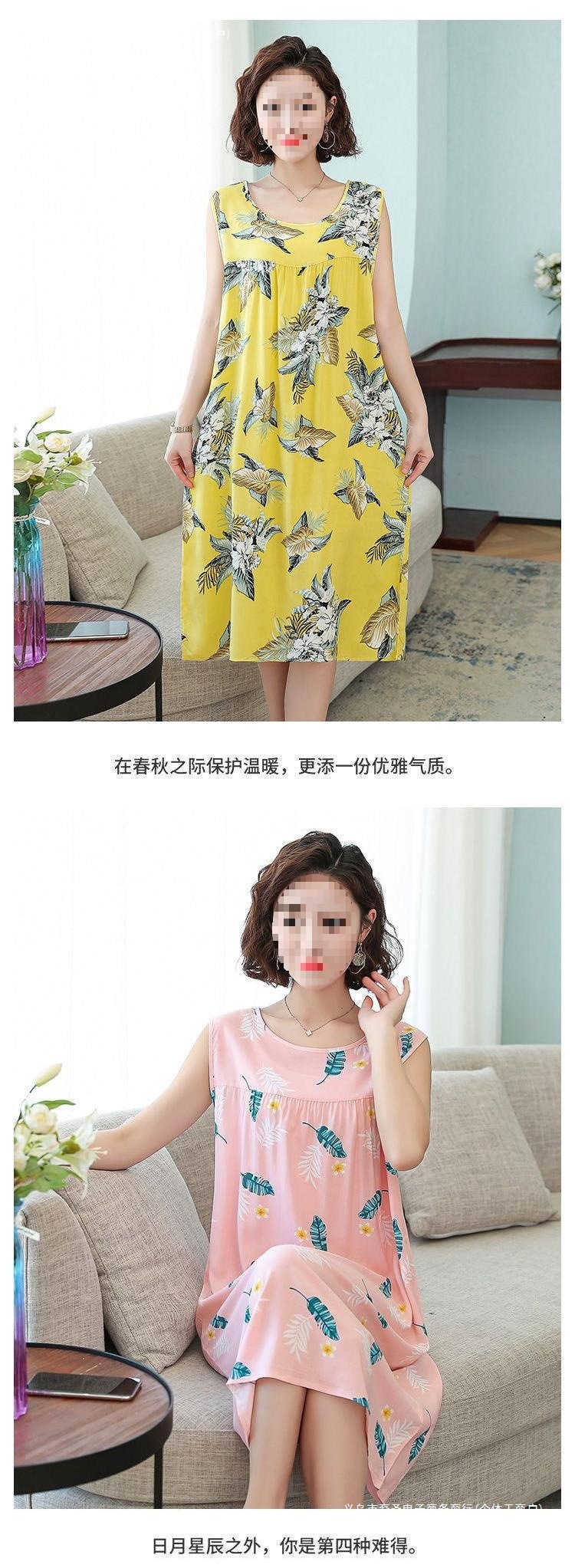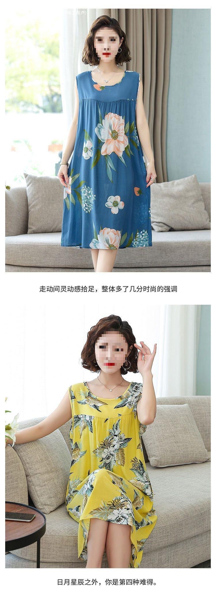 여성용 잠옷 여름 중년 및 노인 면 실크 민소매 새 드레스 어머니 인공 면 중간 길이 느슨한 가정복스토어 가기