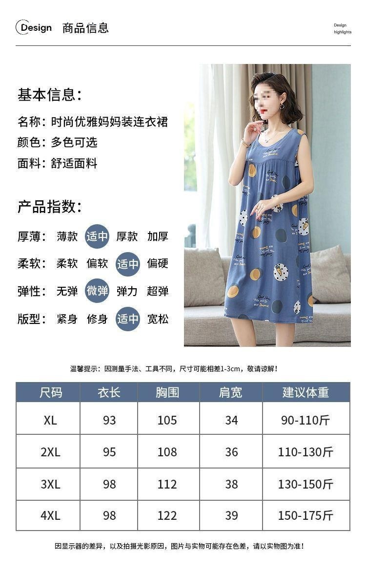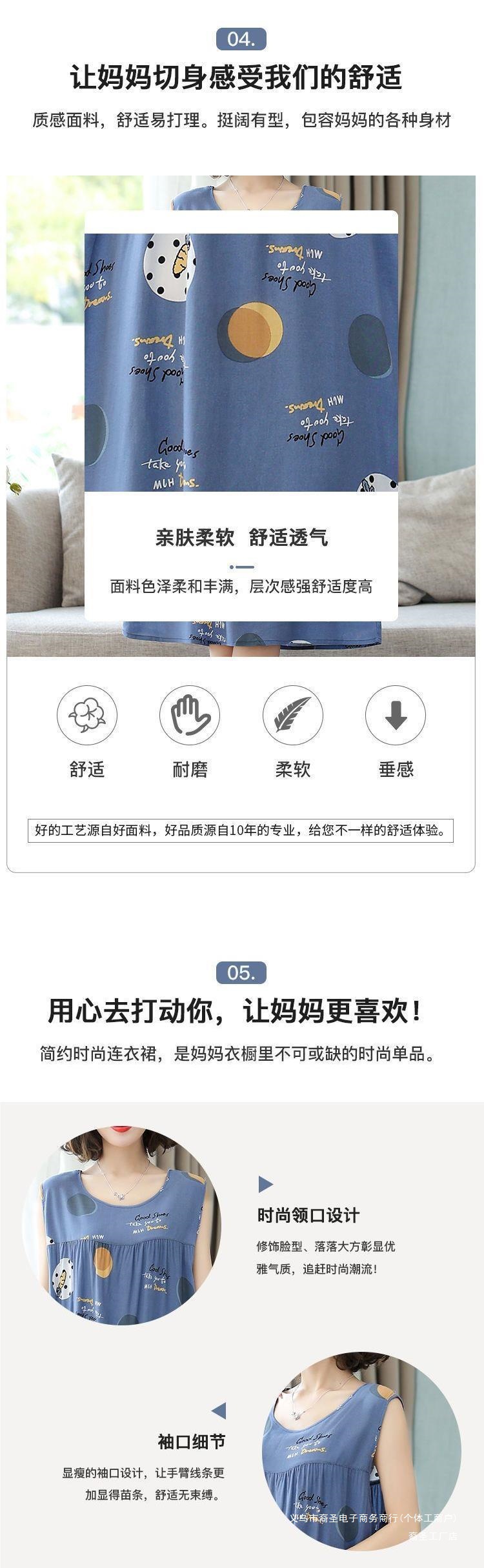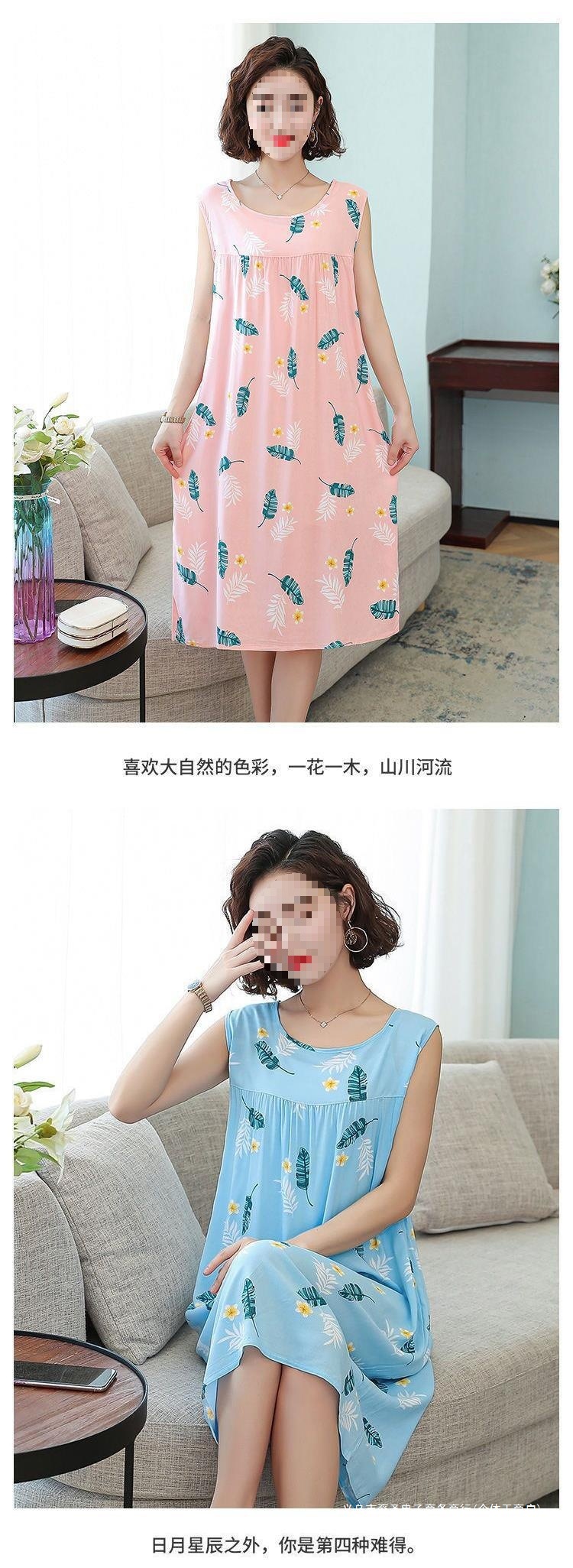 여성용 잠옷 여름 중년 및 노인 면 실크 민소매 새 드레스 어머니 인공 면 중간 길이 느슨한 가정복스토어 가기