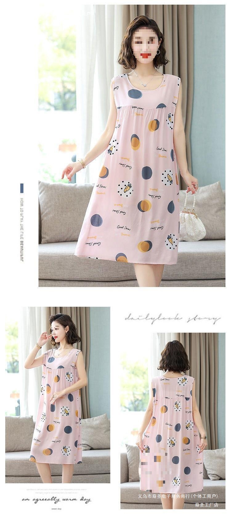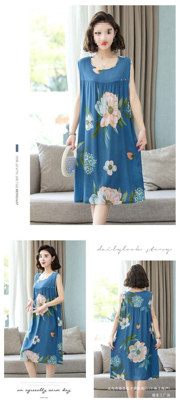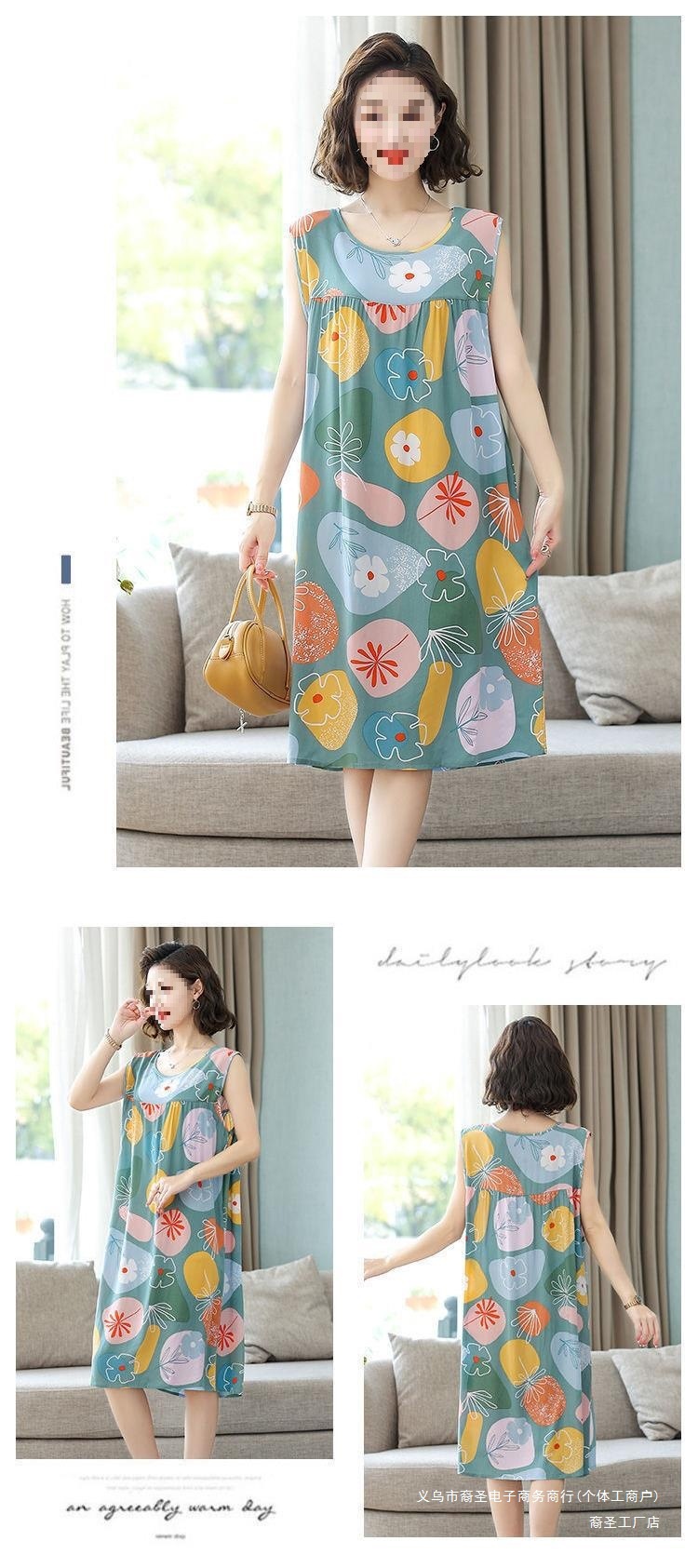 여성용 잠옷 여름 중년 및 노인 면 실크 민소매 새 드레스 어머니 인공 면 중간 길이 느슨한 가정복