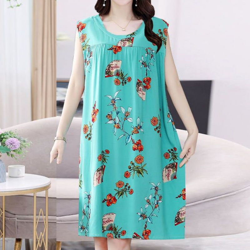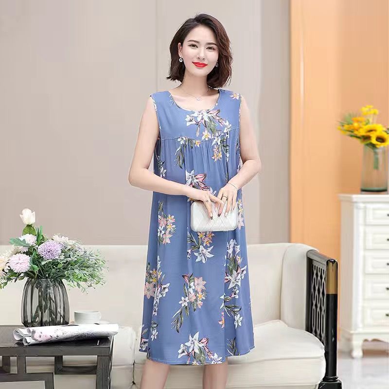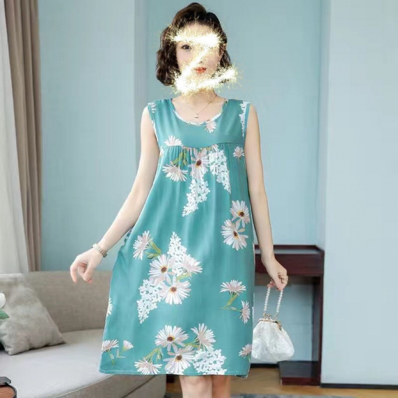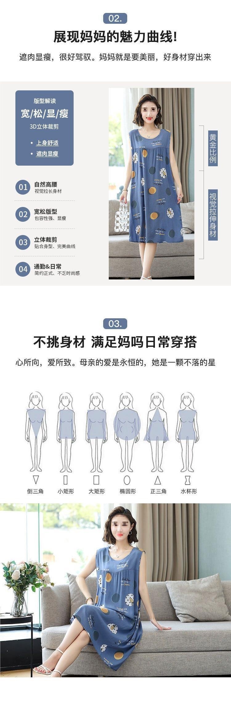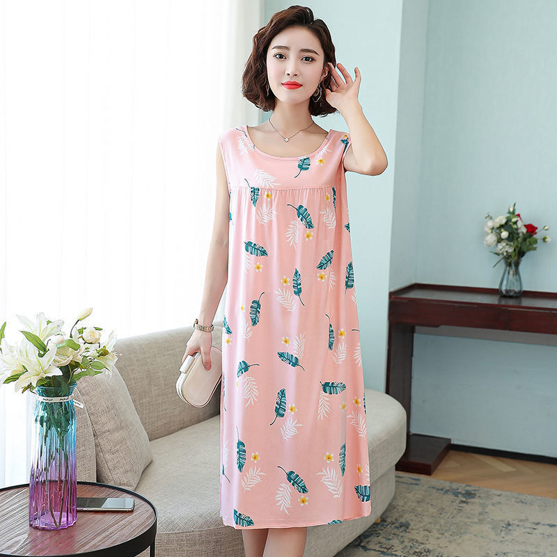 여성용 잠옷 여름 중년 및 노인 면 실크 민소매 새 드레스 어머니 인공 면 중간 길이 느슨한 가정복