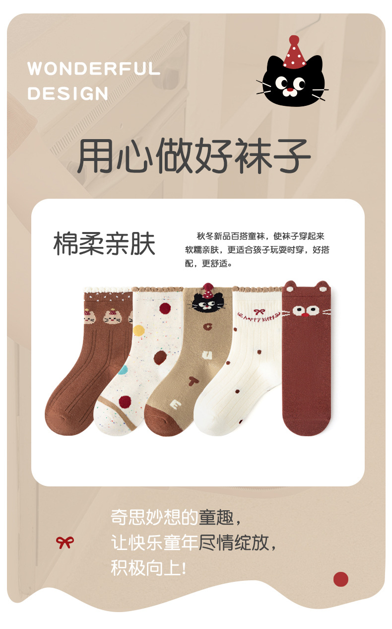 가을, 겨울 새로운 어린이 양말 면화 소년과 소녀 양말 중간 튜브 봄과 가을 부드러운 만화 고양이 유형 A 어린이 양말스토어 가기