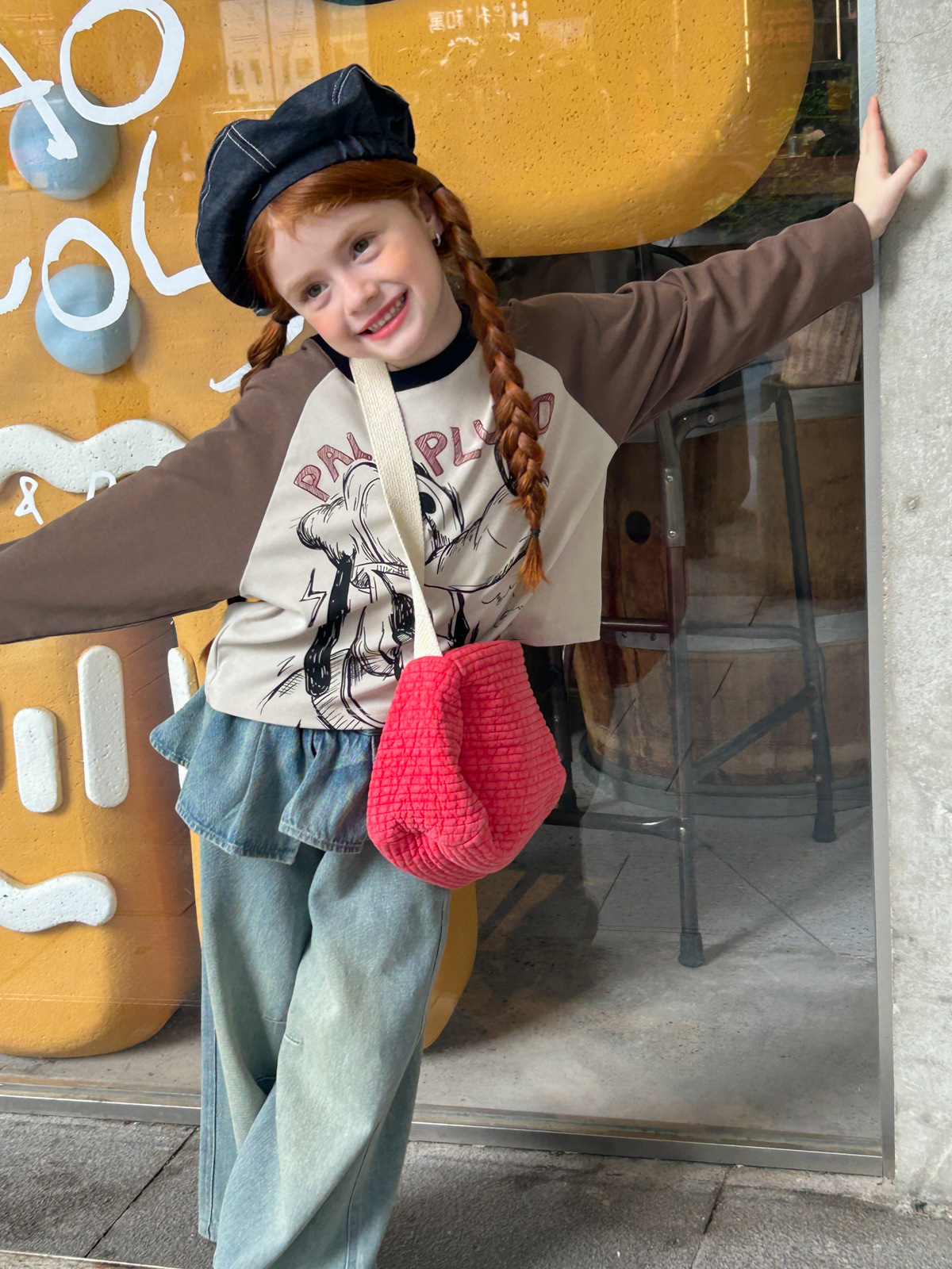 2025 초가을 소녀의 새로운 한국어 디자인 만화 만화 긴팔 바닥 티셔츠스토어 가기