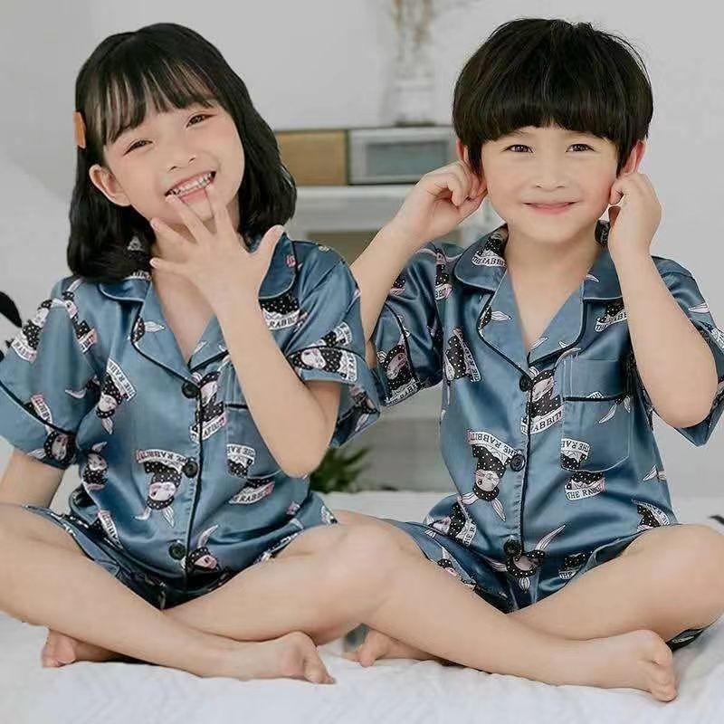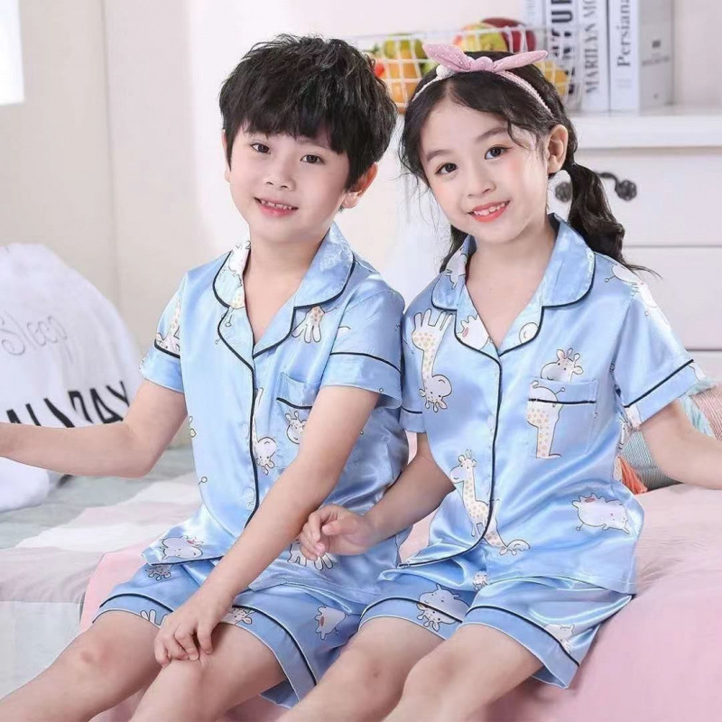 아동용 잠옷, 남아용 여름 얇은 가정복, 어린 소년용 봄, 가을 얼음 실크, 중대형 아동용 긴팔 및 반팔 에어컨 의류, 여성용스토어 가기