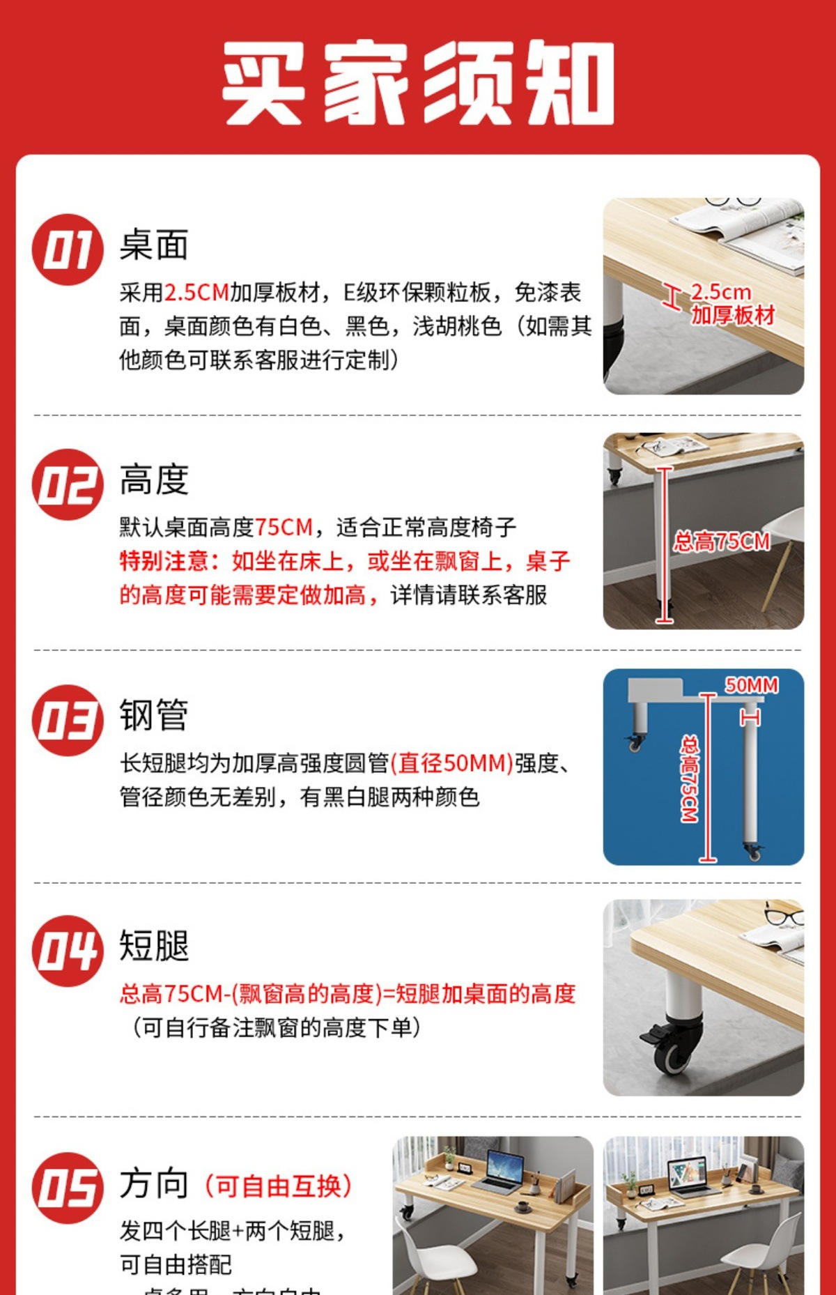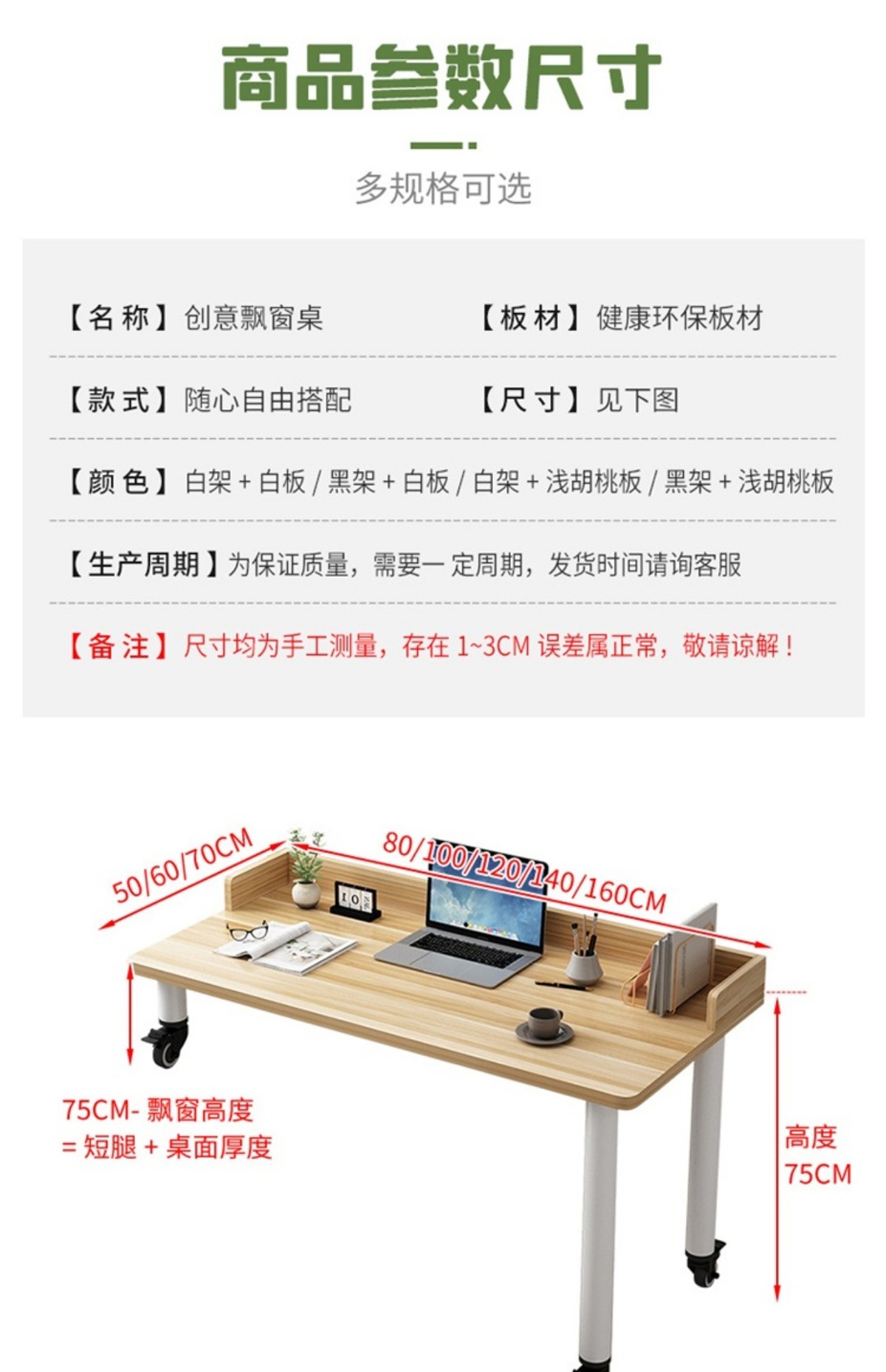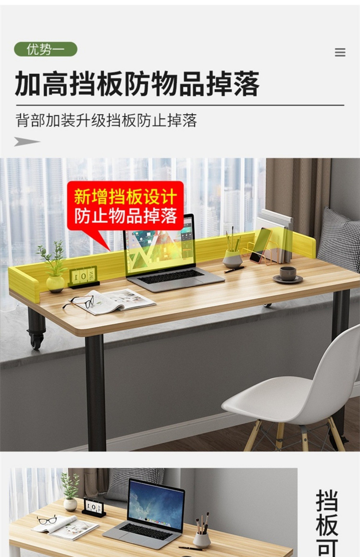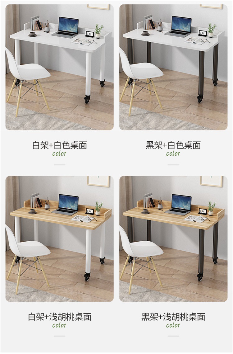 • 흰색 테이블 상판 + 검정색 다리, 브레이크가 있는 저소음 범용 휠