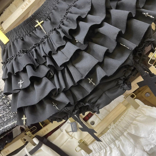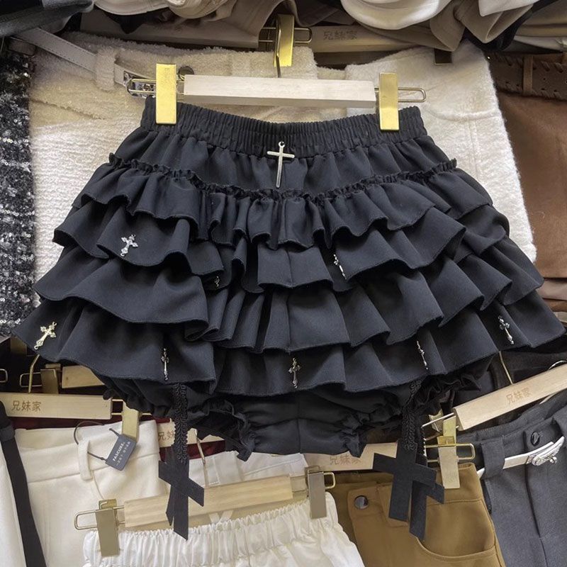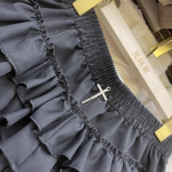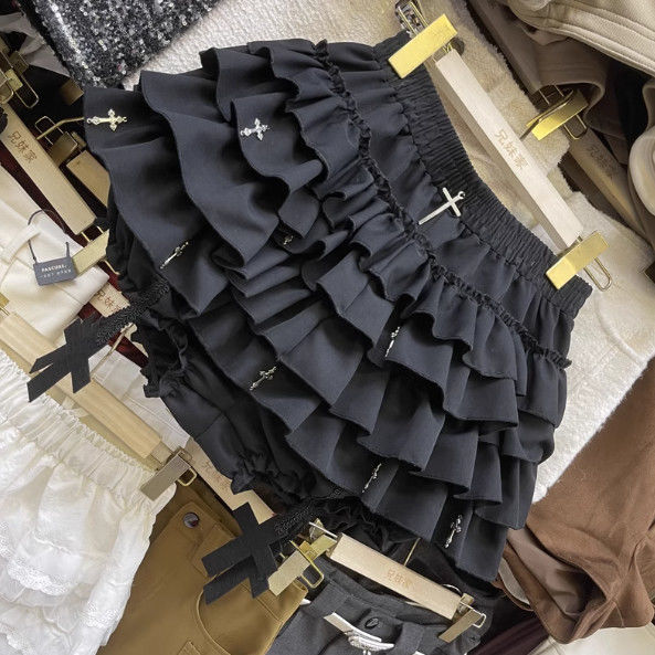소문화 고딕 크로스 블랙 케이크 스커트 여성 여름 핫 소녀 퍼프 스커트 하이 웨이스트 짧은 스커트