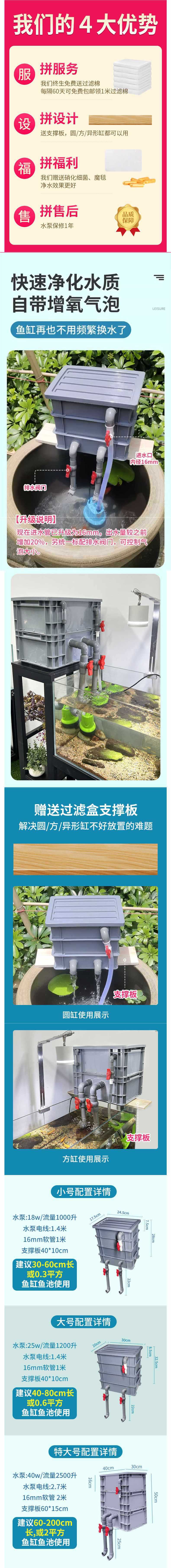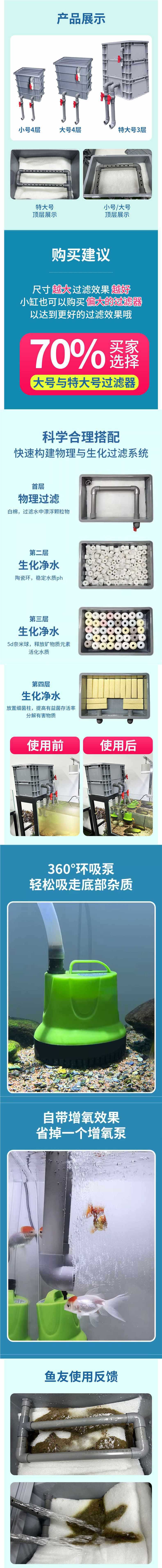 • 초대형 3겹 + 면 + 박테리아 컬럼 + 3.5kg 필터재 + 워터펌프