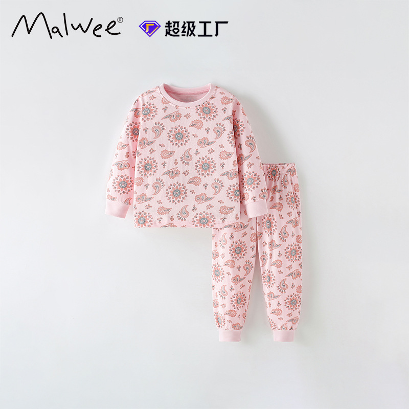 국경 간 malwee 여자 가정 의류 티셔츠 가을, 겨울 새로운 유럽과 미국 어린이 정장 귀여운 인쇄 투피스 세트스토어 가기